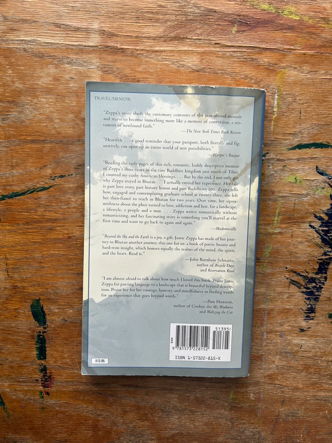 Selling the book 'Beyond the Sky and the Earth: A Journey into Bhutan' by Jamie Zeppa! It's a travel memoir that offers a glimpse into the author's experiences in Bhutan