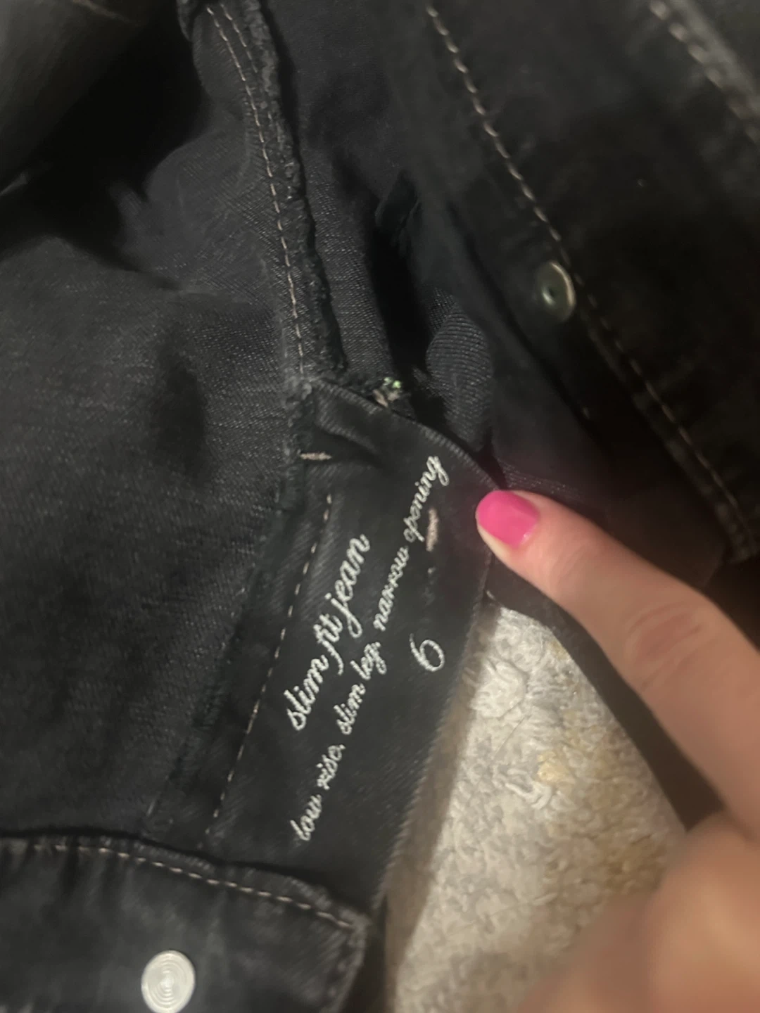 Selling a pair of slim fit jeans in size 6. They are a low rider with a slim leg and narrow opening. Great condition!