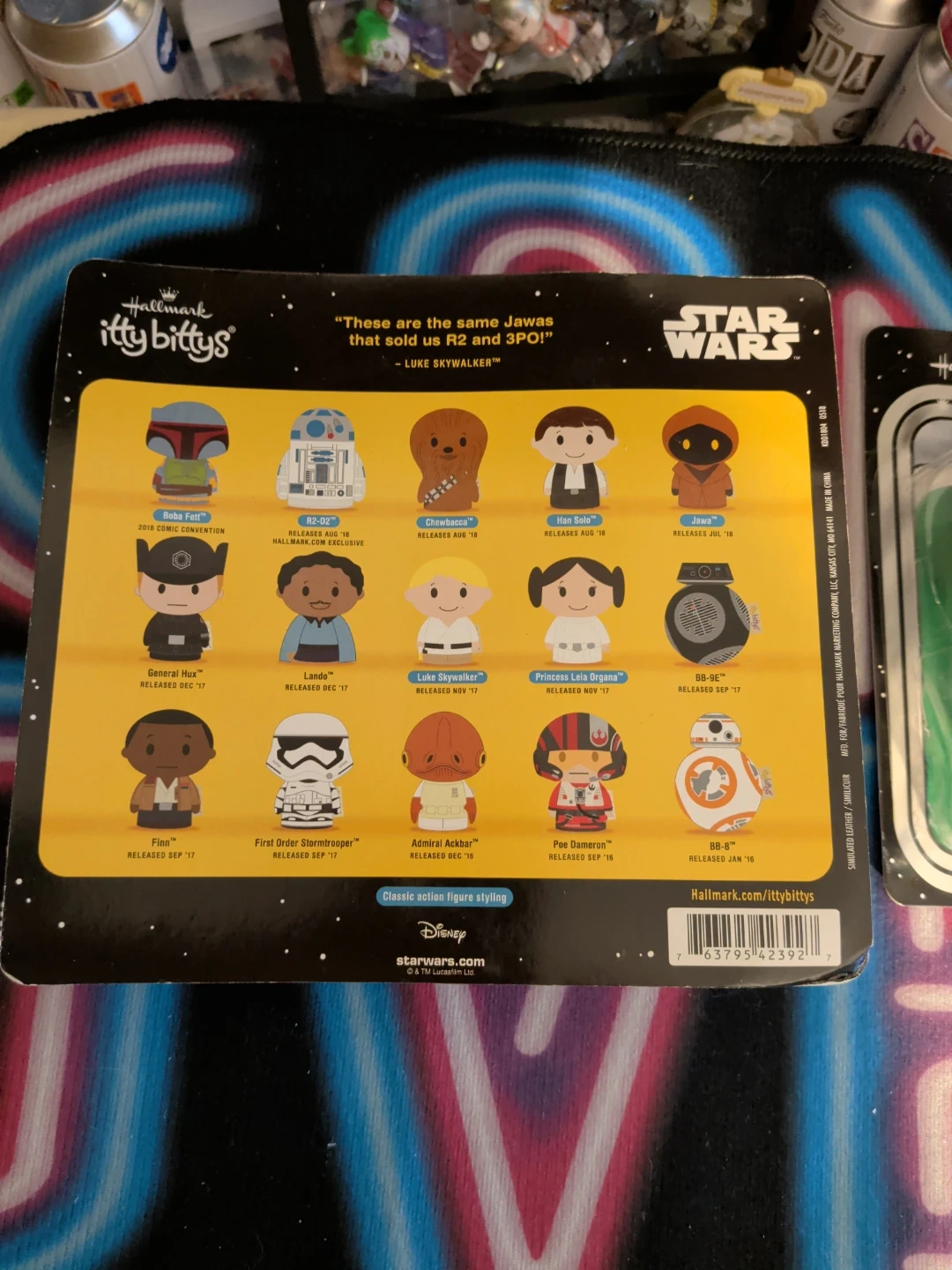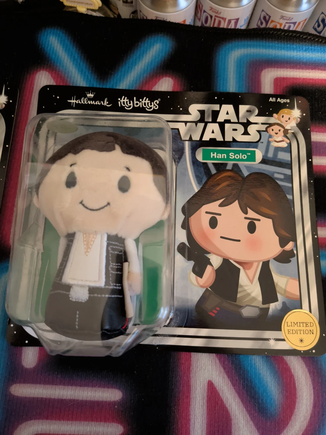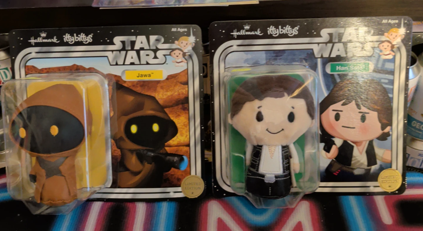 These are Hallmark Itty Bittys Star Wars plush figures. Features a Jawa and Han Solo. Both are brand new in packaging with limited edition labels. They're soft and collectible!