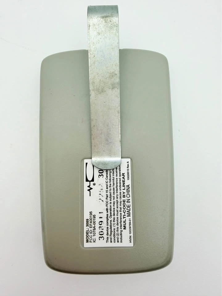 Multi-Code 3089 single-button remote in great working condition. Uses standard 300 MHz dip-switch programming (10-switch). Perfect replacement remote for older garage or gate systems. Includes visor clip and 9V battery. Tested and fully functional. Pickup in Chicago – West Town 60612. I can show you how to program it on pickup if needed.