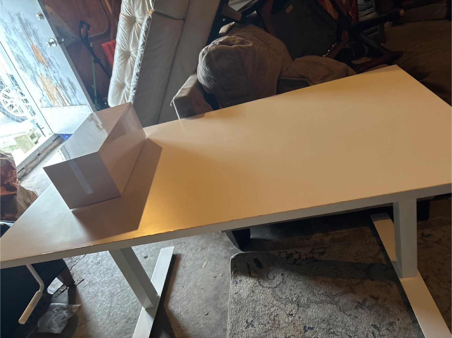 Standing hand crank desk like new comes with a wire cover box. Top off for easy loading