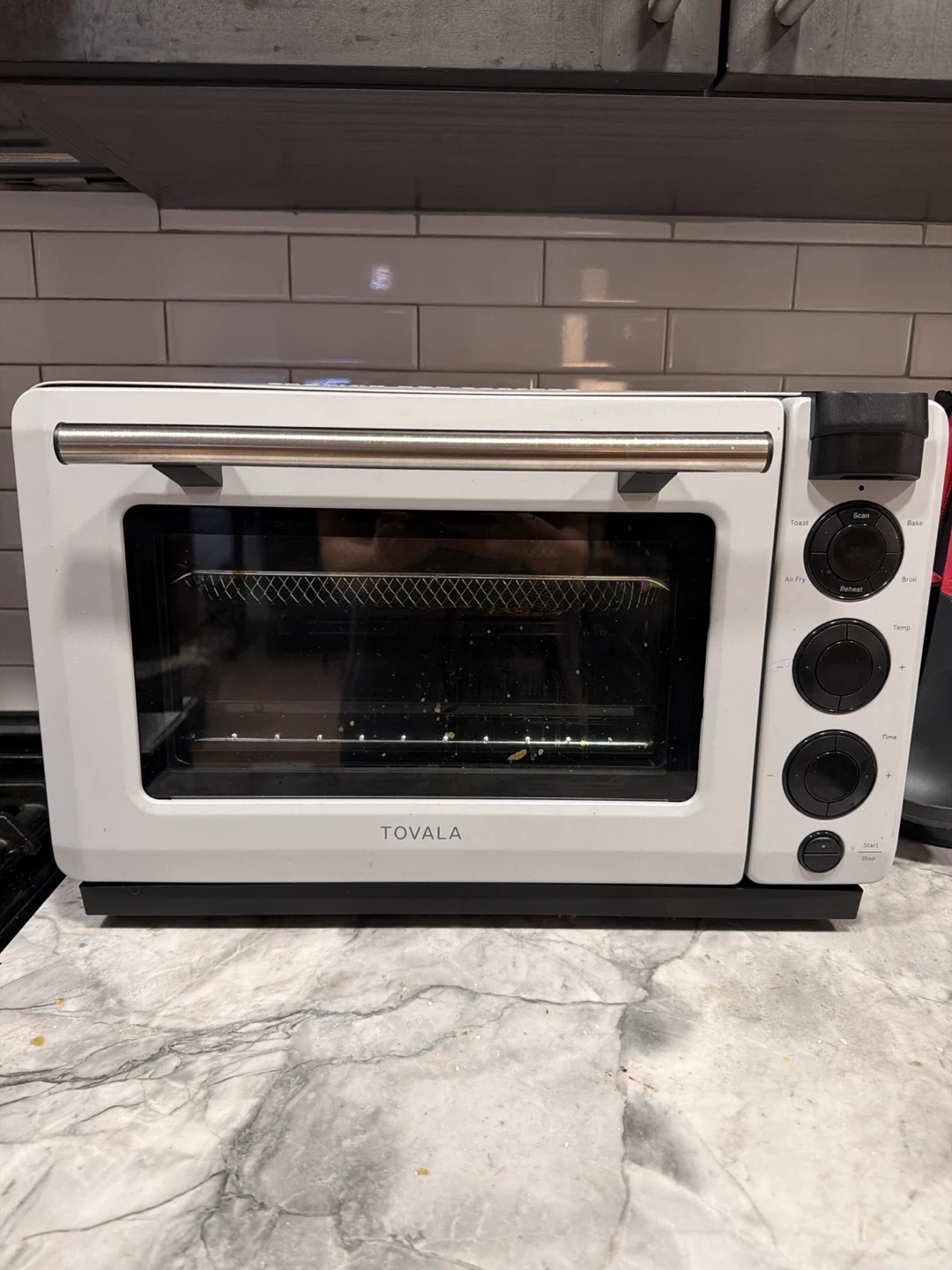 The oven includes a wire rack, an air frying rack and a baking tray and features easy-to-use controls and a QR scanner to scan heating instructions if ordering pre-prepped meals from Tovala.