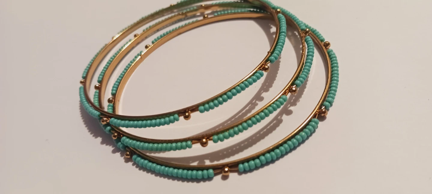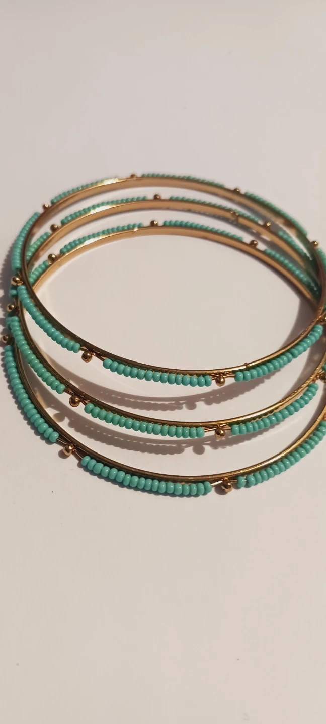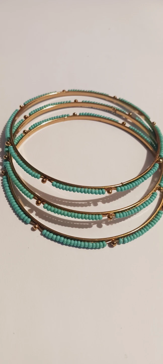 New !! A set of 3 gold-tone turquoise beaded bangle bracelets. Each bracelet features a band of small turquoise beads with occasional gold accent beads. They're a stylish accessory for any occasion!!! New !! 3". ALL MY PRICES ARE NEGOTIABLE !!