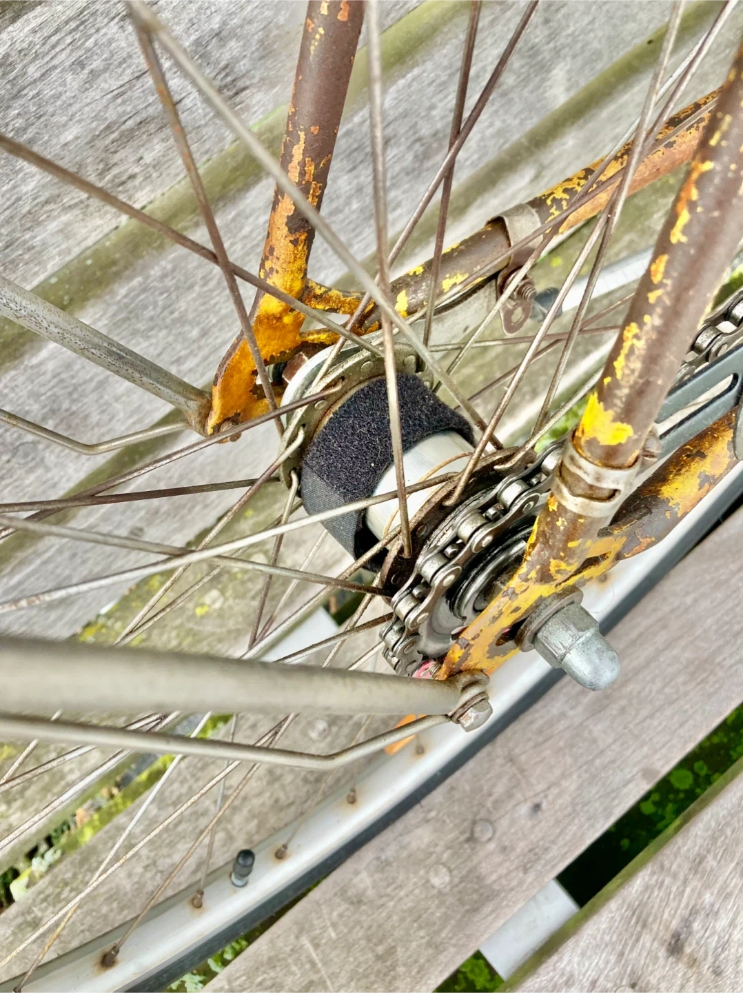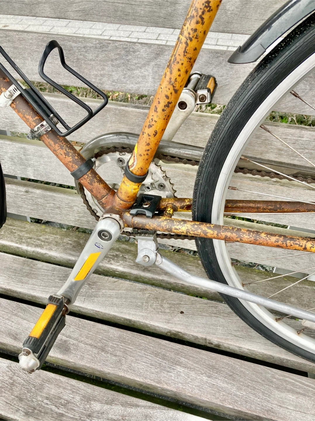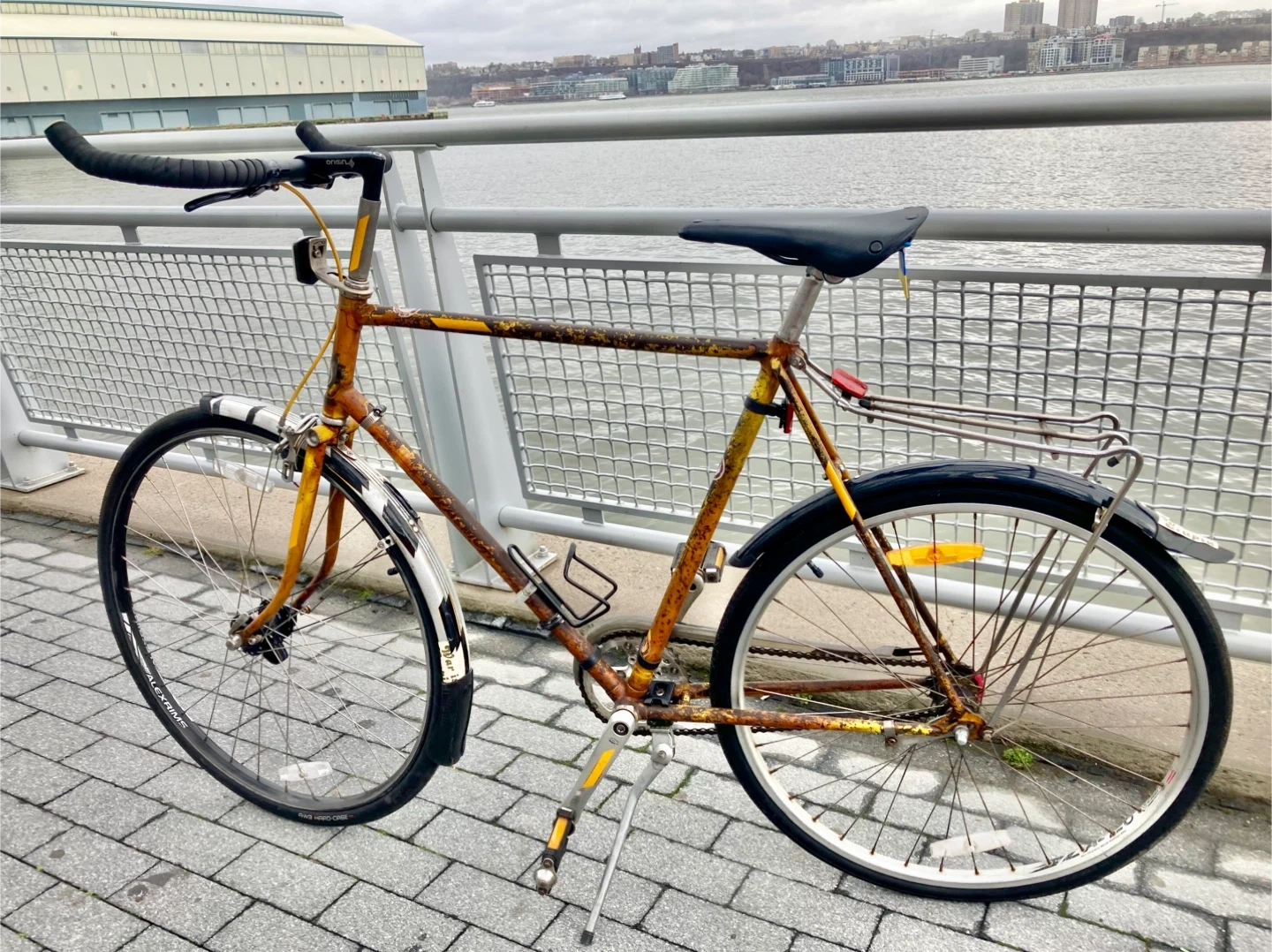 Everything is in good working condition and well lubricated. This bike's sturdy construction makes it suitable for rides in any weather.
