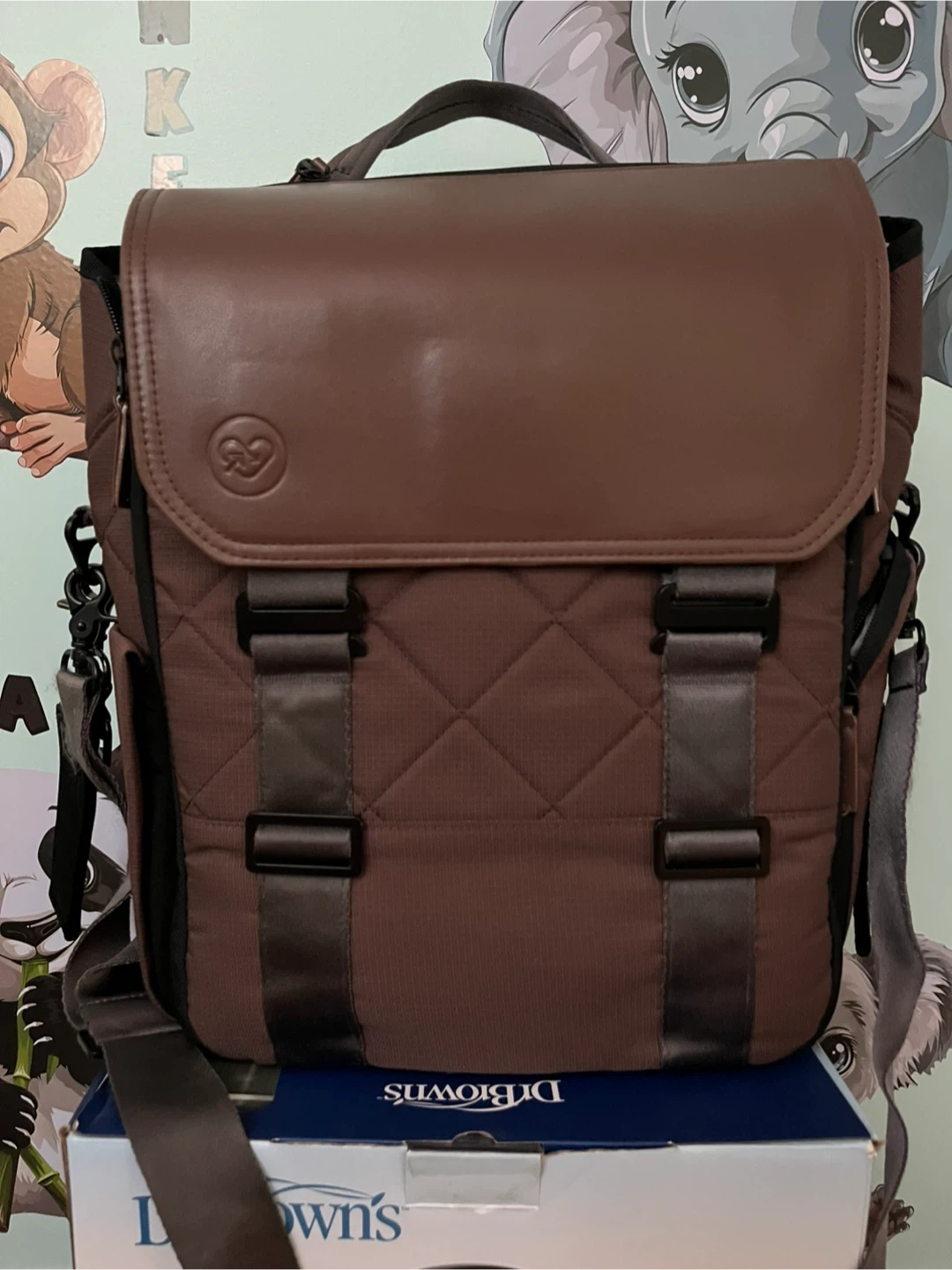 I'm selling a stylish and functional diaper bag backpack in a lovely brown color. It's perfect for keeping all your baby essentials organized while you're on the go. This backpack features multiple compartments and pockets to store diapers, bottles, wipes, and more. It's in great condition and ready for a new home!