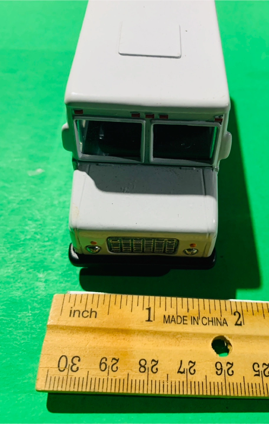 Collectible diecast model of a USPS Grumman Long Life Vehicle. White with blue and red detailing. Approximately 2 inches long. Made in China. Great for collectors.