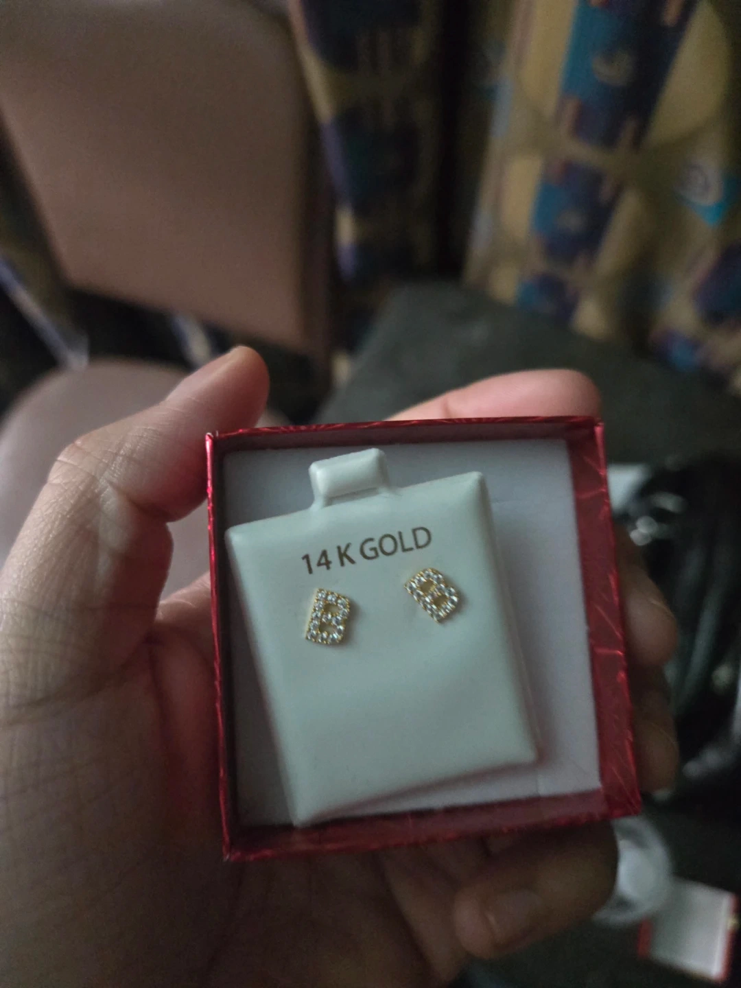 These 14K gold stud earrings feature an initial "B" design. They come in a gift box. They're perfect for everyday wear or as a thoughtful present!