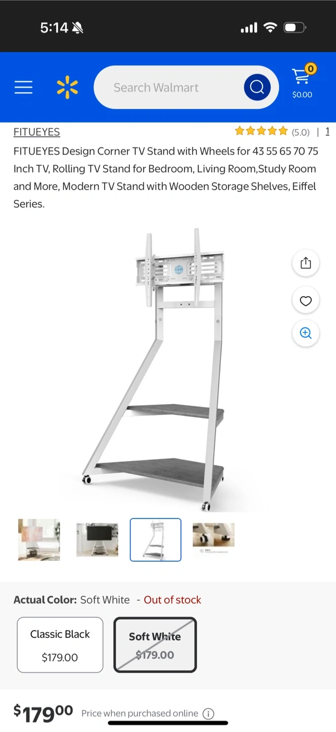 FITUEYES Design Corner TV Stand with Wheels for 43-75 Inch TVs