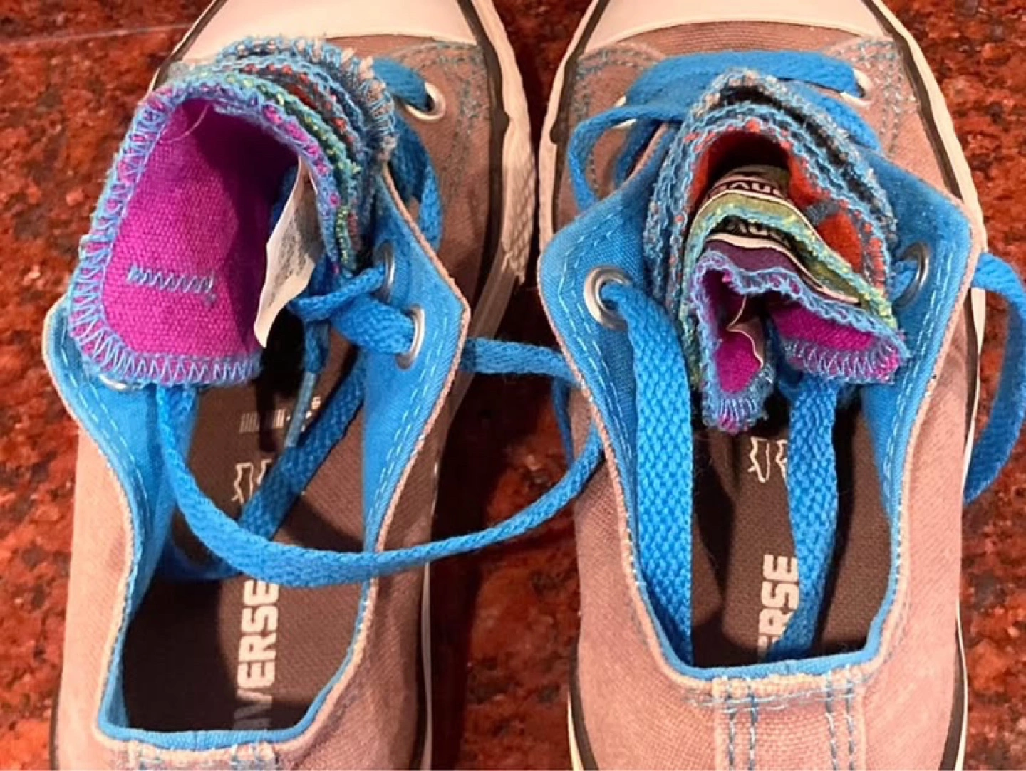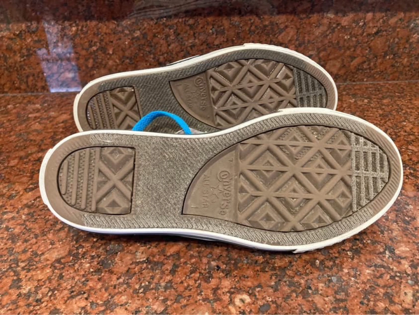 Girls size 1 Chuck Taylor, low top Rare 5 flap, converse gym shoes, in almost perfect condition. Outside of minor wear on back heel of logo.