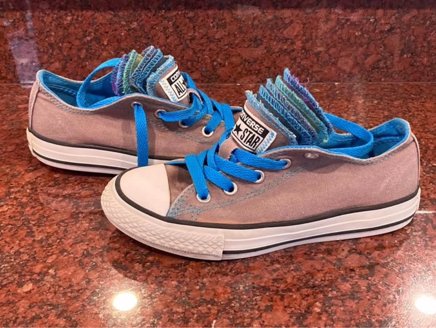 Converse All Star Gray and Blue Low Top Sneakers Size Youth 1