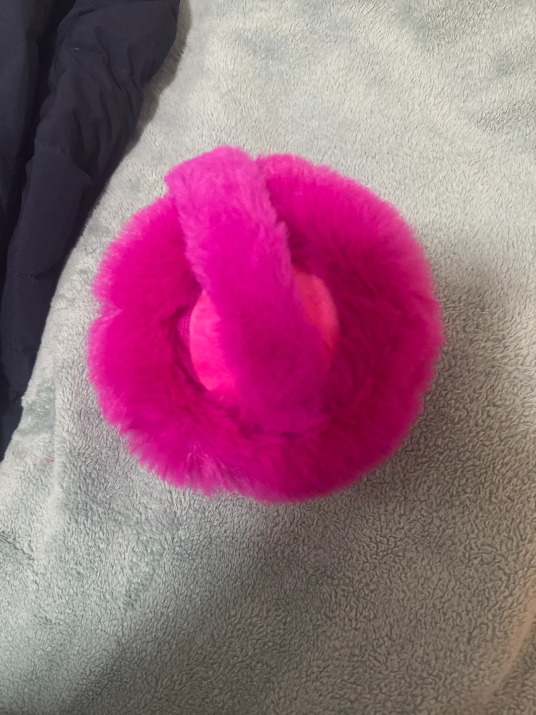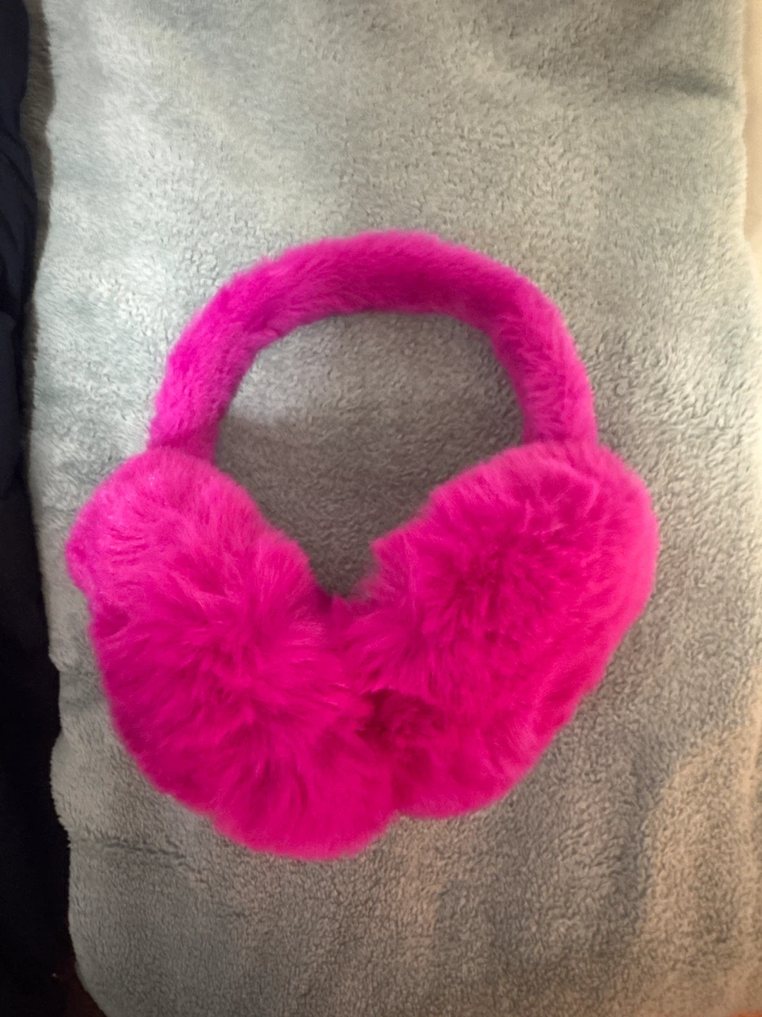 Cozy hot pink fuzzy earmuffs. These earmuffs are super soft and plush. They're perfect for keeping your ears warm on chilly days!
