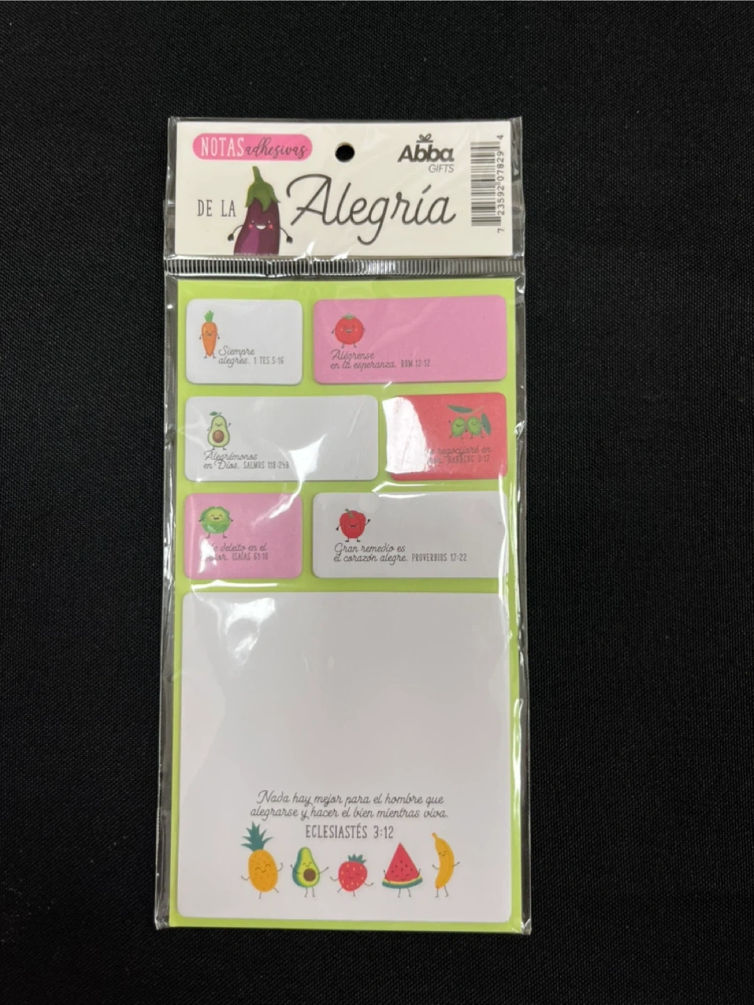 15Selling a pack of Abba Gifts sticky notes. These are called 'Notas Adhesivas de la Alegria'. They are brand new and still in the original packaging. Perfect for adding a touch of inspiration to your notes!