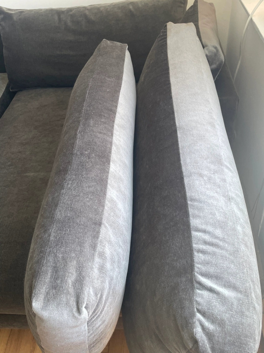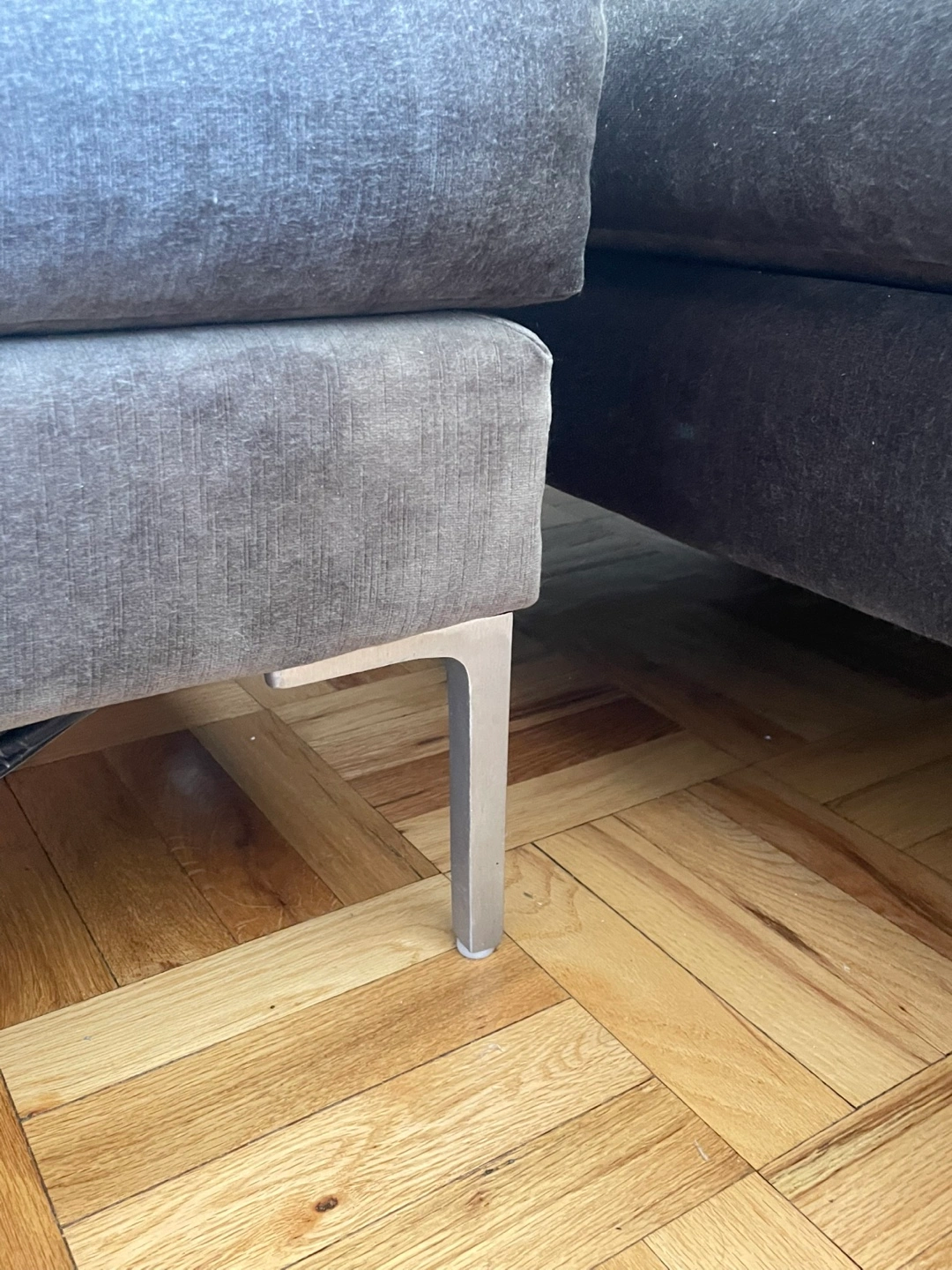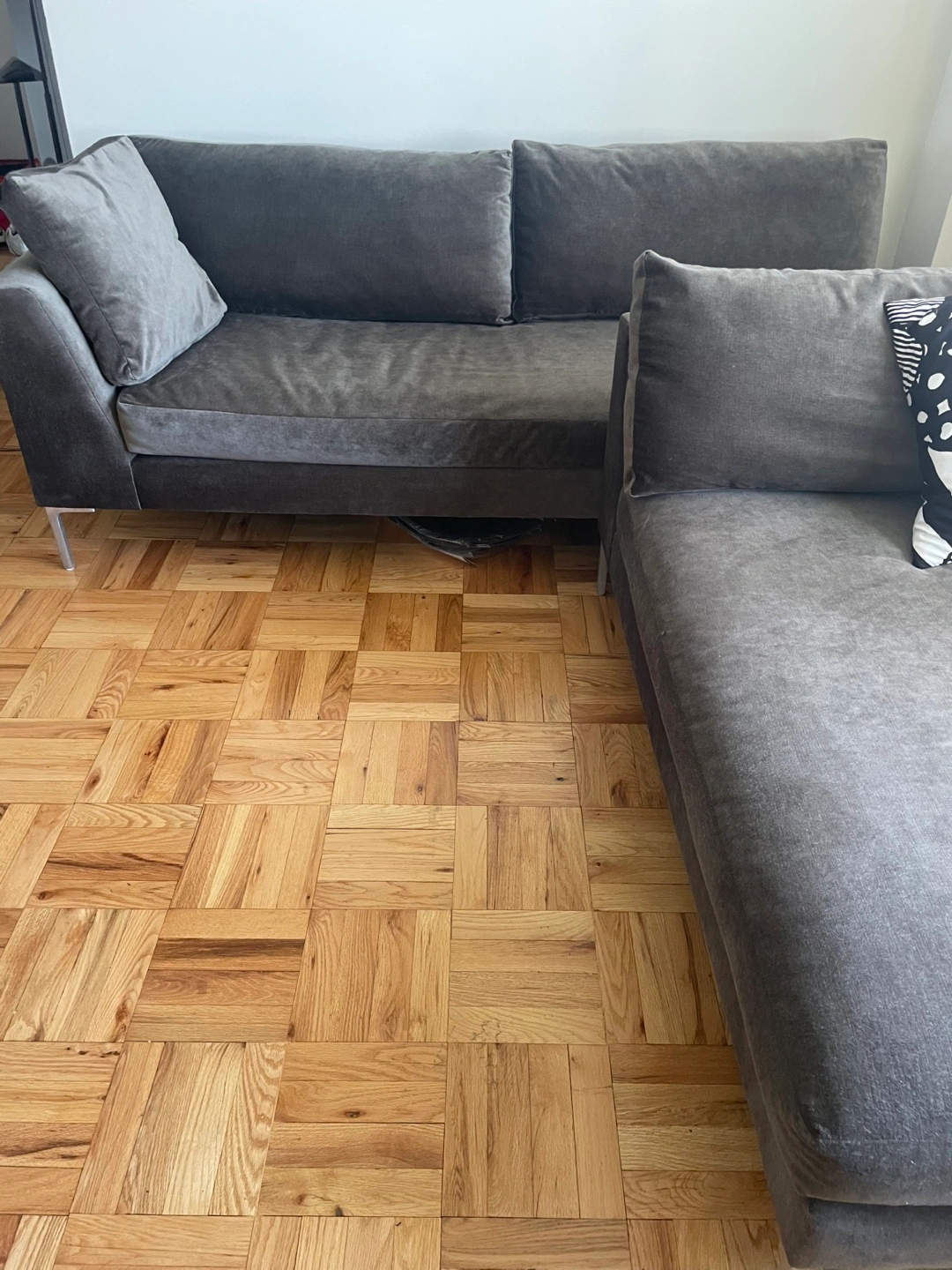 Selling a comfy gray sectional sofa. It's in great shape and ready for a new home! The material is a cotton blend fabric, perfect for lounging. It's a stylish and functional piece that would look great in any living room, many more years left the cushions are in great condition. Firm . Non smoking or pets. Clean reduced from $3800. Price firm . Elevator building