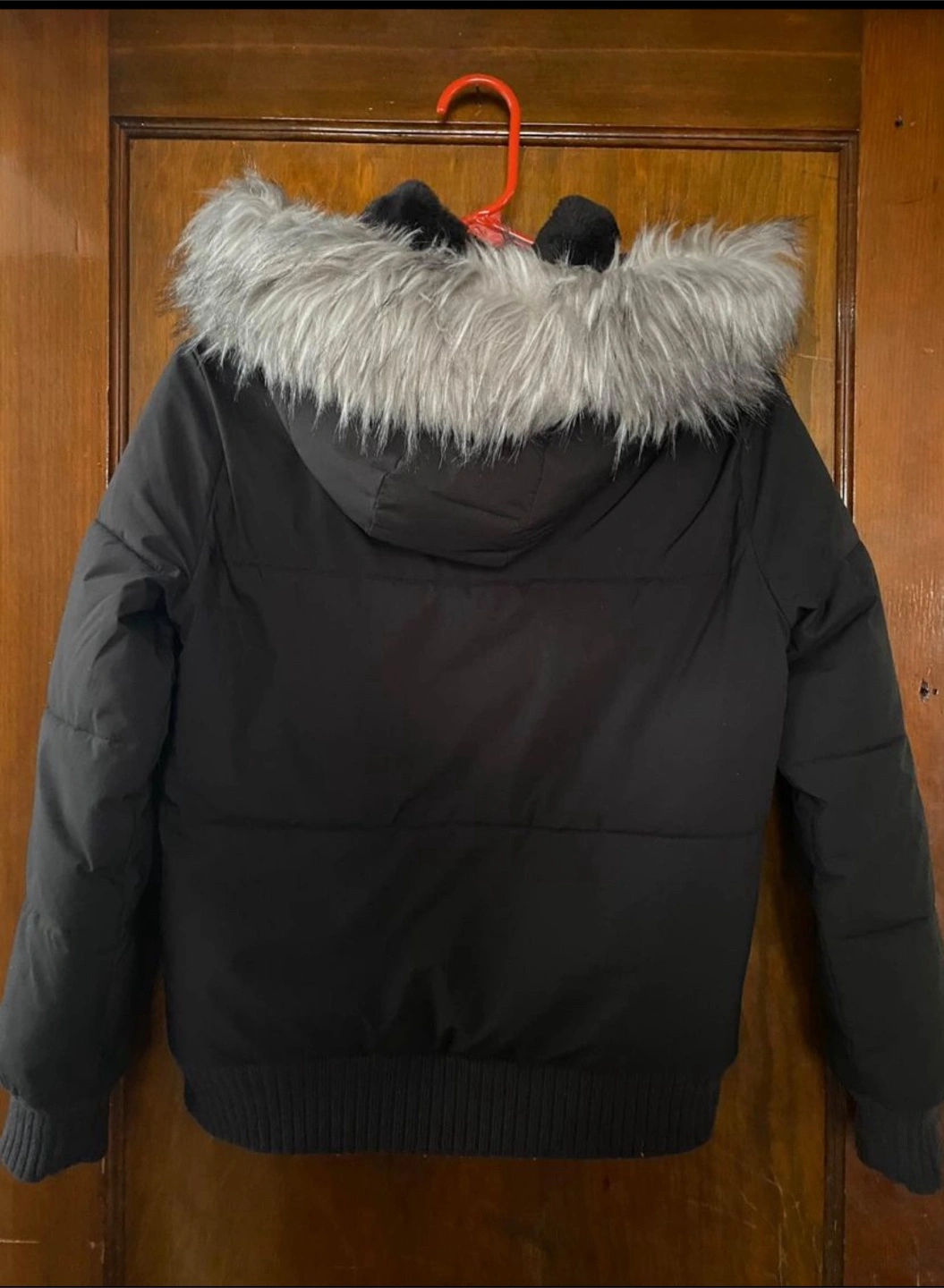 65Selling a black puffer jacket from Abercrombie ! It's in great condition and perfect for the cold weather. The jacket features a faux fur hood and a zip-up front with pockets. It's a stylish and warm addition to your wardrobe Size 11/12