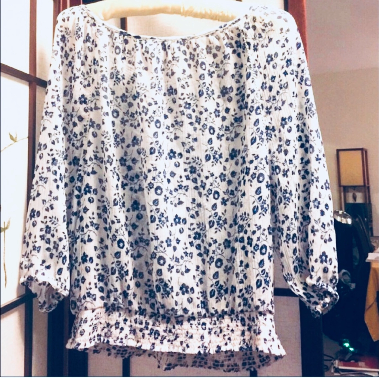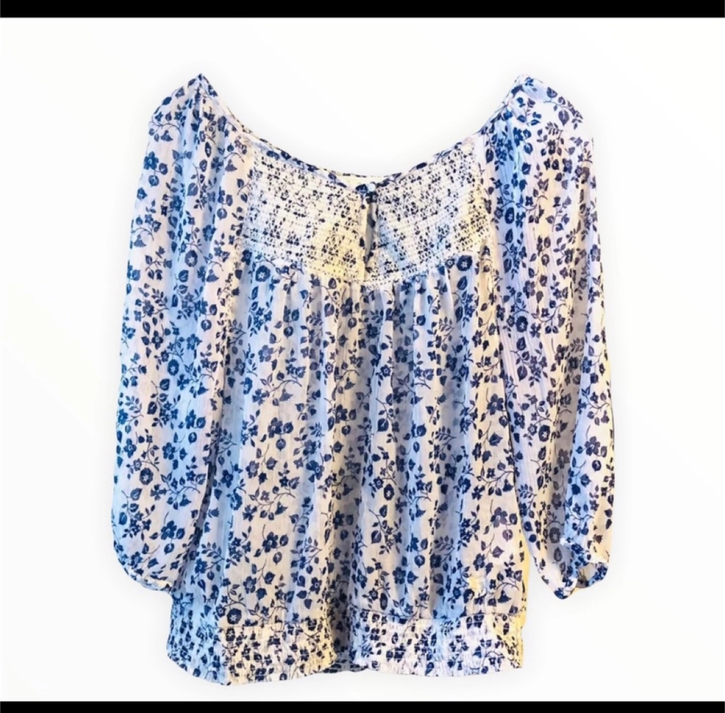 Here's a cute Abercrombie & Fitch blouse in size M! It features a lovely floral pattern in blue and white. Perfect for a casual day out! Gently used from my closet lovely floral top. 100% polyester Made in India ————- I cross list B5