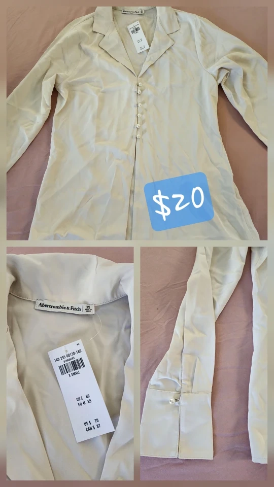 60Selling an Abercrombie & Fitch button-down top in size XS! The tag is still attached. According to the tag, it originally retailed for $70 USD / $87 CAD