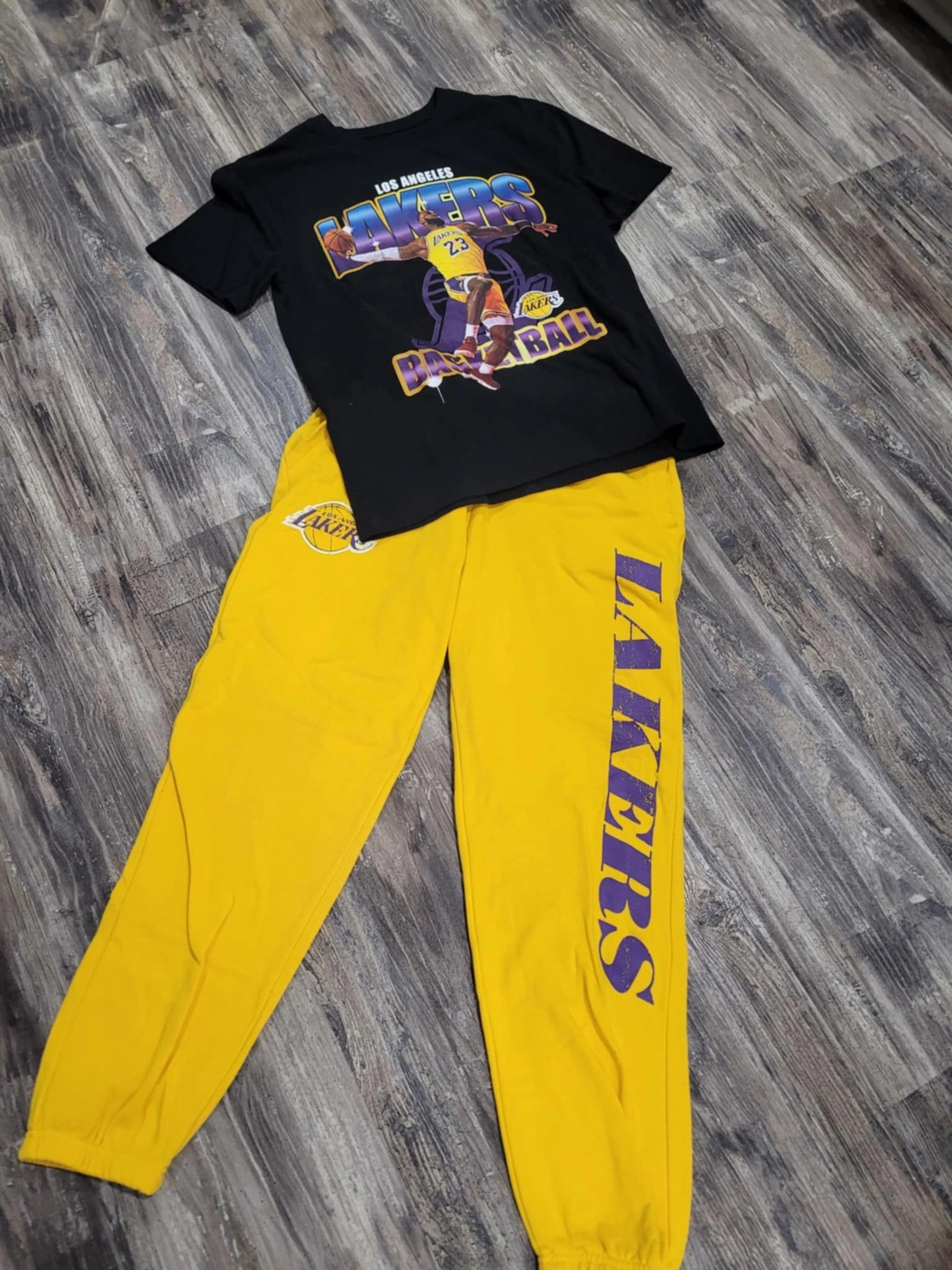 Set Of NBA Los Angeles Lakers Sweatpants & Lebron James Shirt Ad