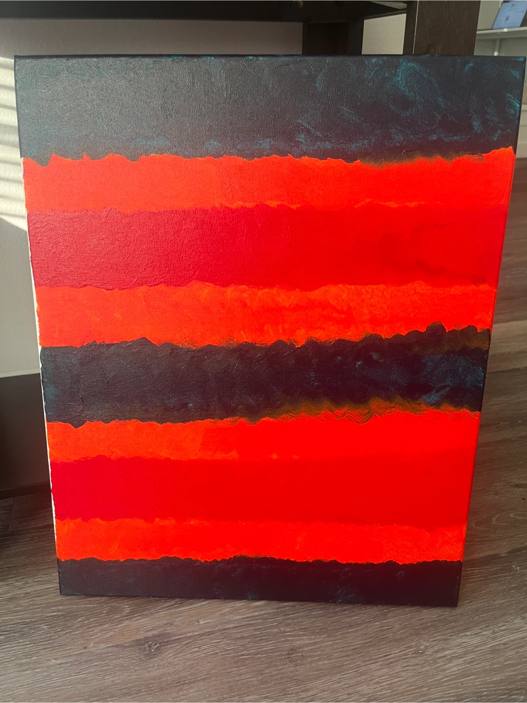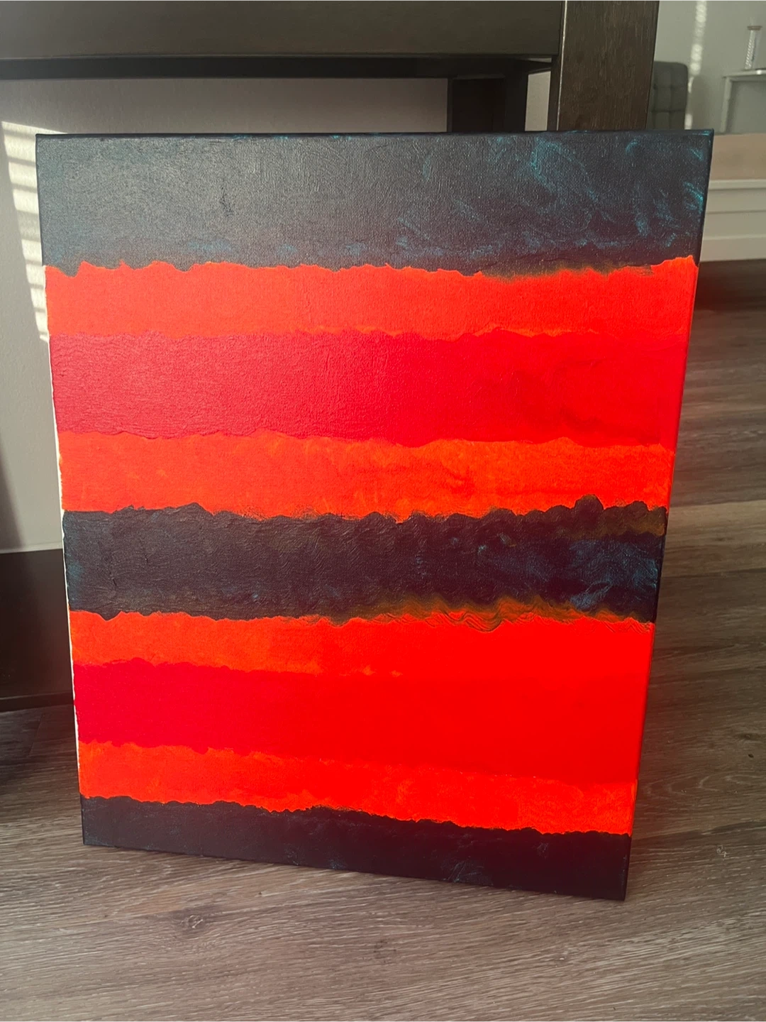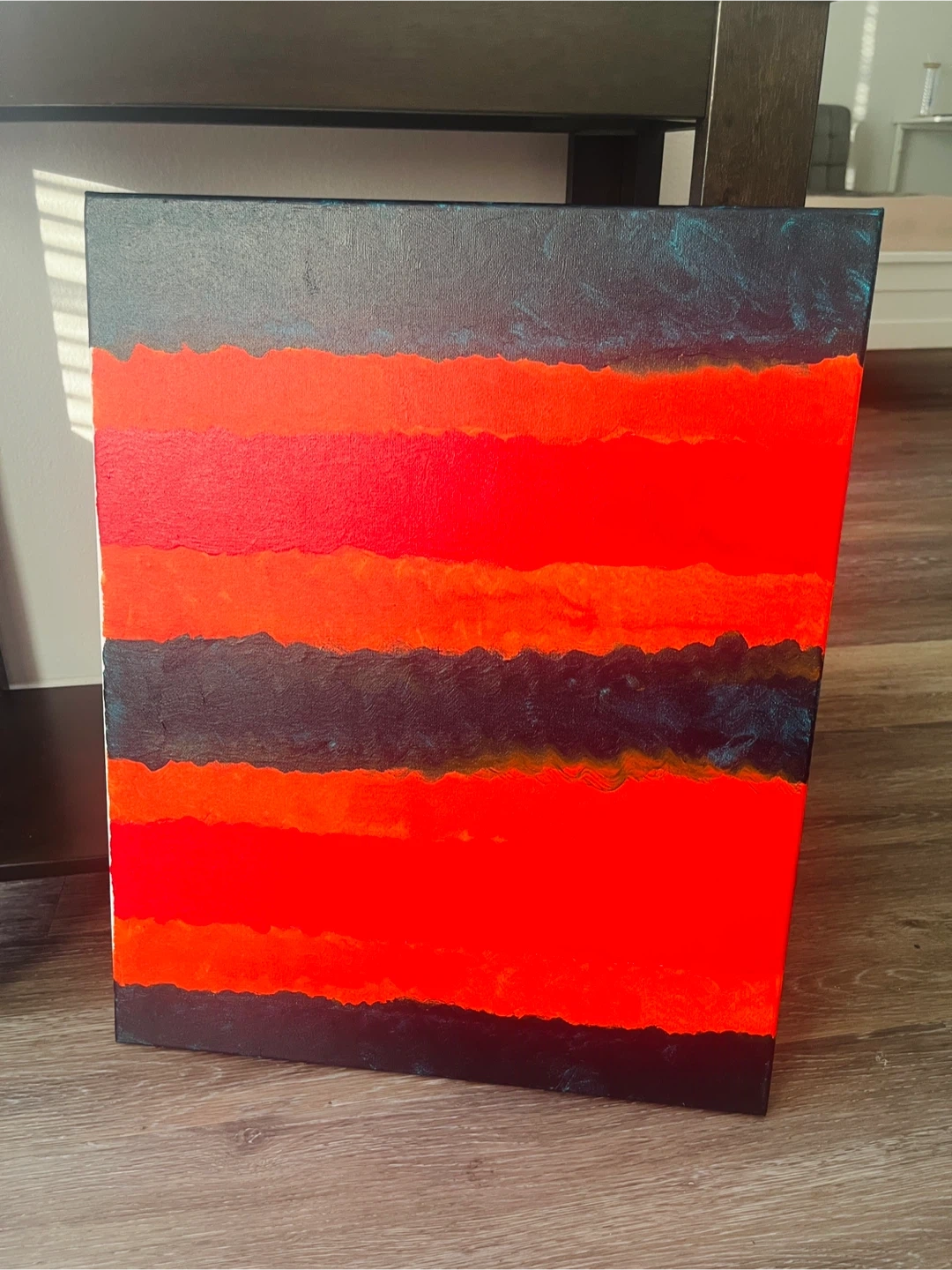 181New abstract art/canvas painting. Hangs on wall. About 2 feet by 1 foot.