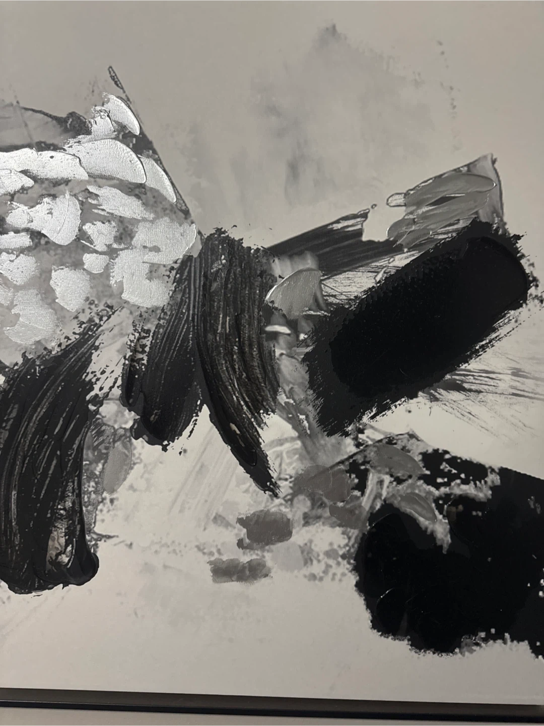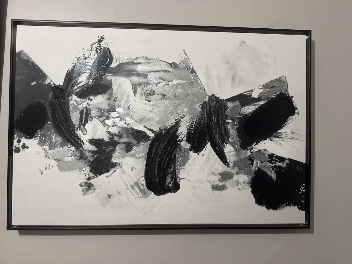 107Selling a framed abstract art piece in black and white. It's in great condition and ready to add a modern touch to your space!