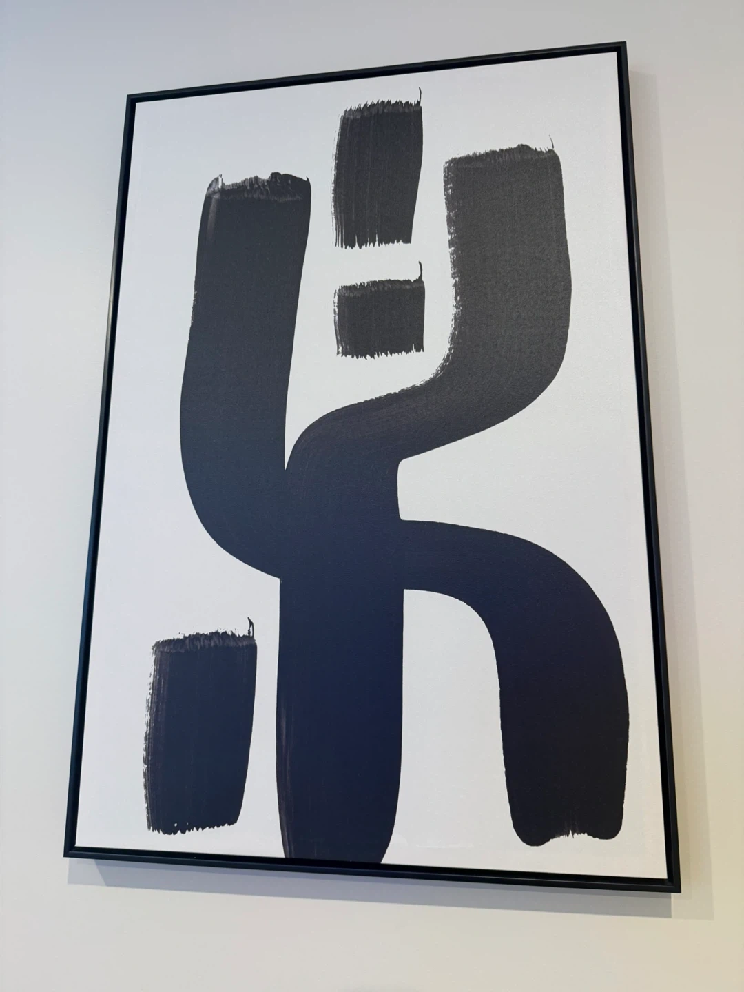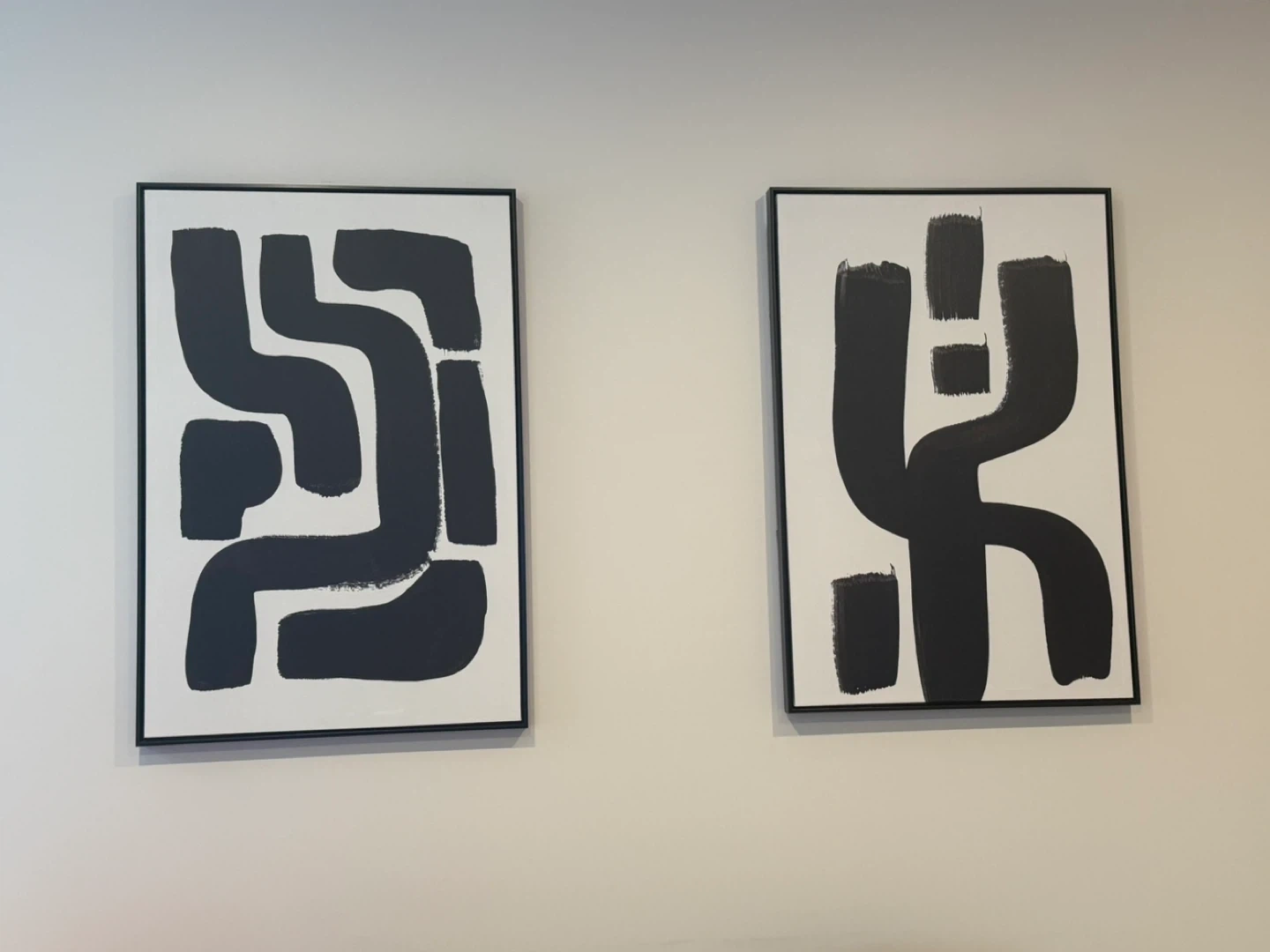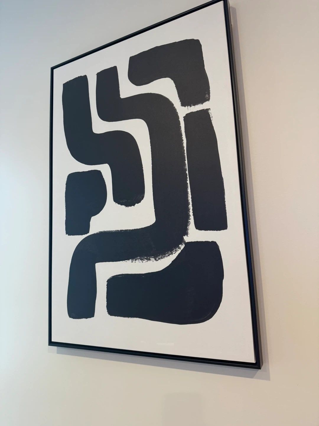 5Selling a set of two abstract wall art pieces. They feature a black and white color scheme with unique designs. These framed prints would look great in any room!