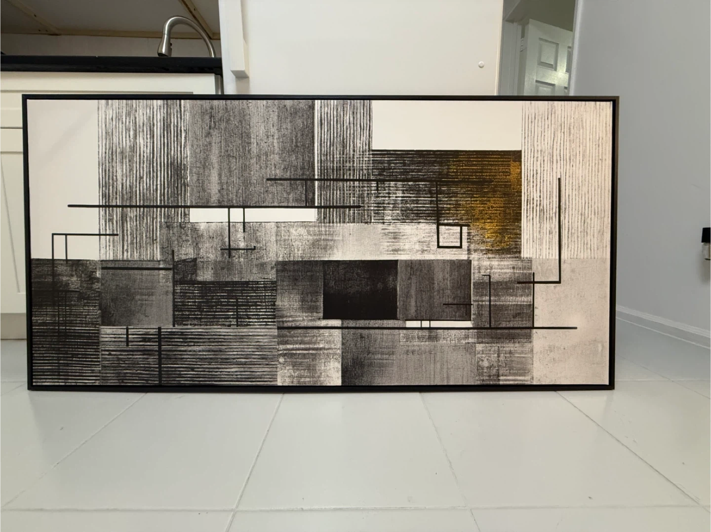 10Selling a framed abstract wall art piece. It measures approximately 59 inches in length and 29 inches in width. It's in great condition and would look great in any room! Brand new!!!