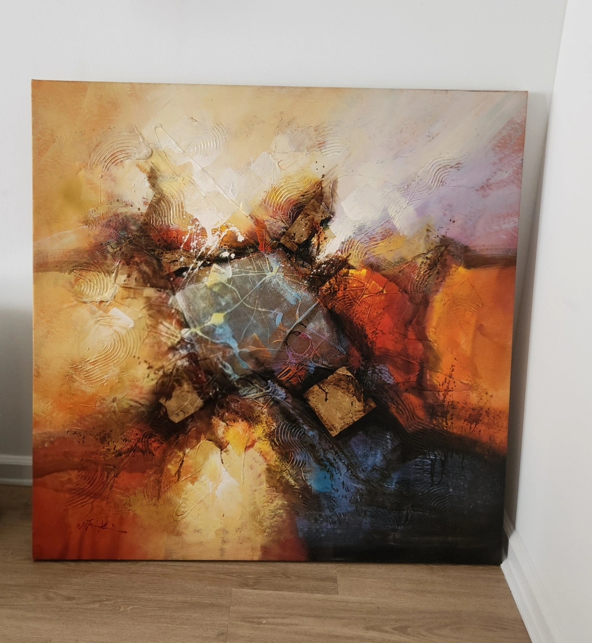 Selling an abstract painting, perfect for adding a touch of modern art to your space. The colors are vibrant and the textures are unique. It's in great condition and ready to hang! Notes:Vintage oil and acrylic painting. Made in early 1900s. Perfect or a living room, entrance accent or collector's item. Minor wear around edges from framing. Excellent condition. Add this piece to your home! This piece has been housed in a smoke-free, pet-free, odor free pied-à-terre apartment. Price Negotiable.