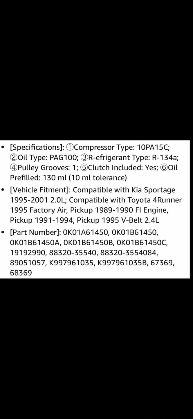 A-Premium Air Conditioner AC Compressor with Clutch for Toyota and Kia. See all pictures for Fitment. Acc-68369 Pick up only. Cash only.
