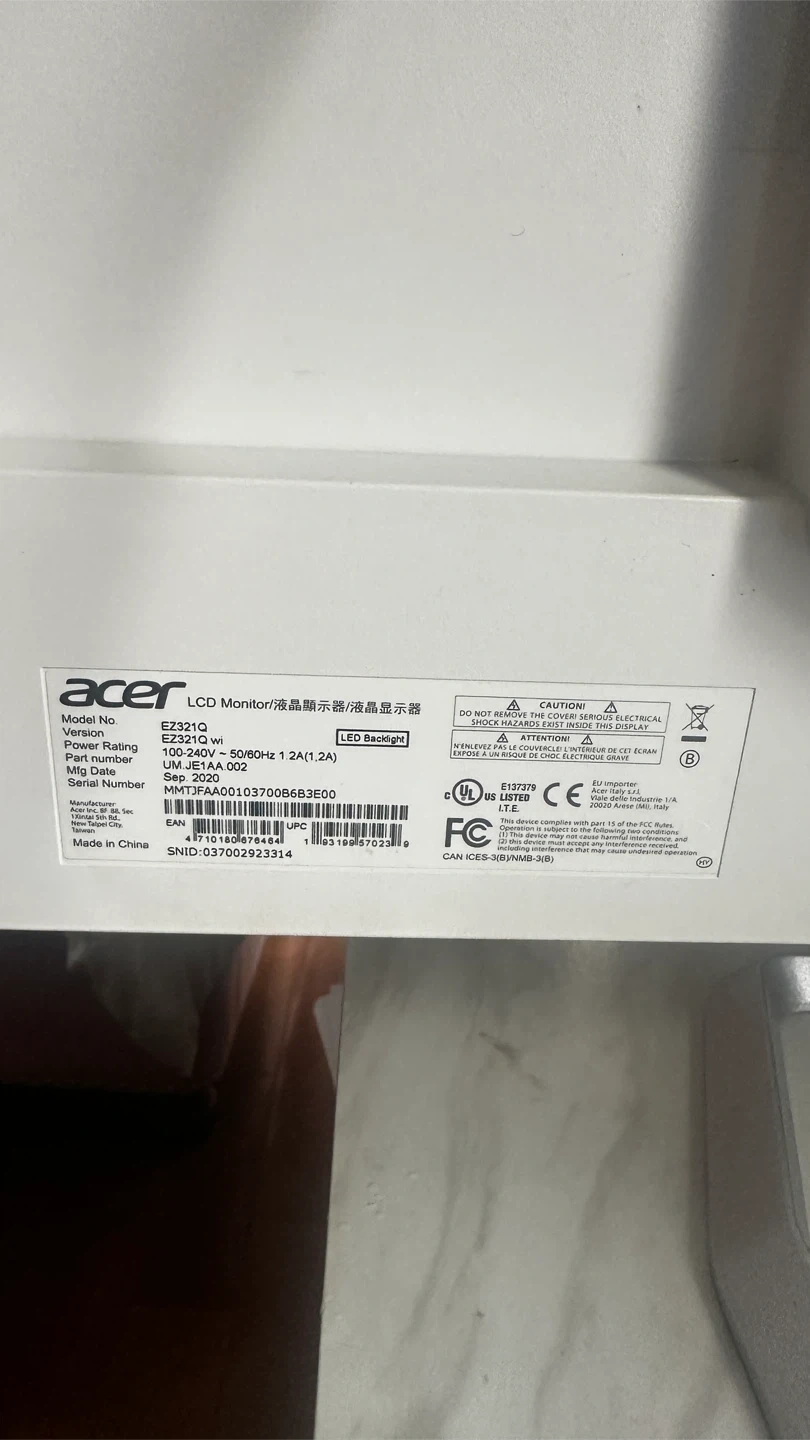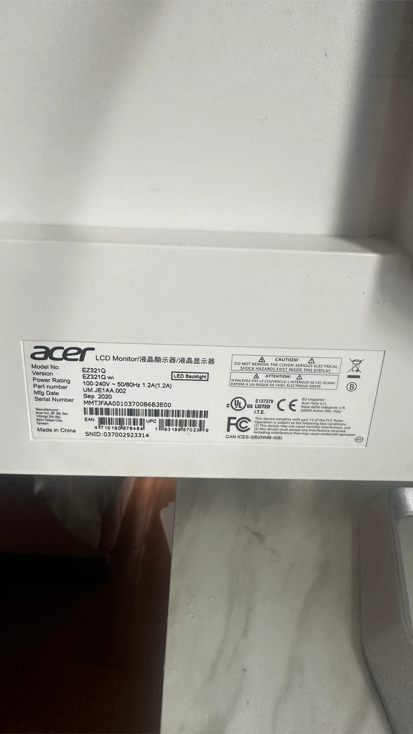 10Selling an Acer EZ321Q 32-inch LCD monitor! It's in great condition and ready to use. The monitor has an LED backlight for a clear display. Feel free to reach out if you have any questions!