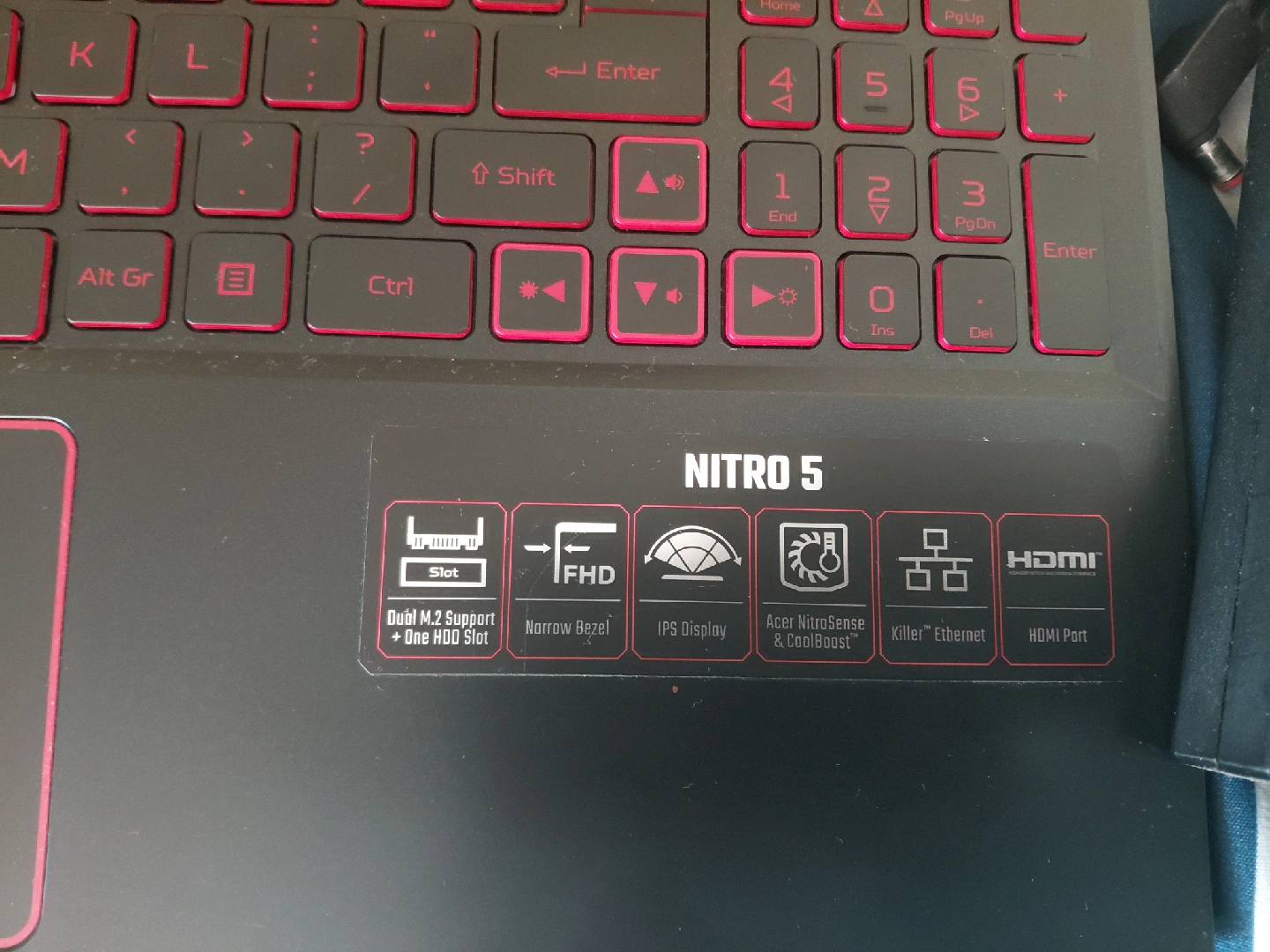 20Selling an Acer Nitro 5 gaming laptop in black and red. This laptop comes with its charger. The manufacturing date is 2020 October 15. It has a dual M.2 support and one HDD slot. It also features a narrow bezel, IPS display, Acer NitroSense & Coolboost, Killer Ethernet, and an HDMI port