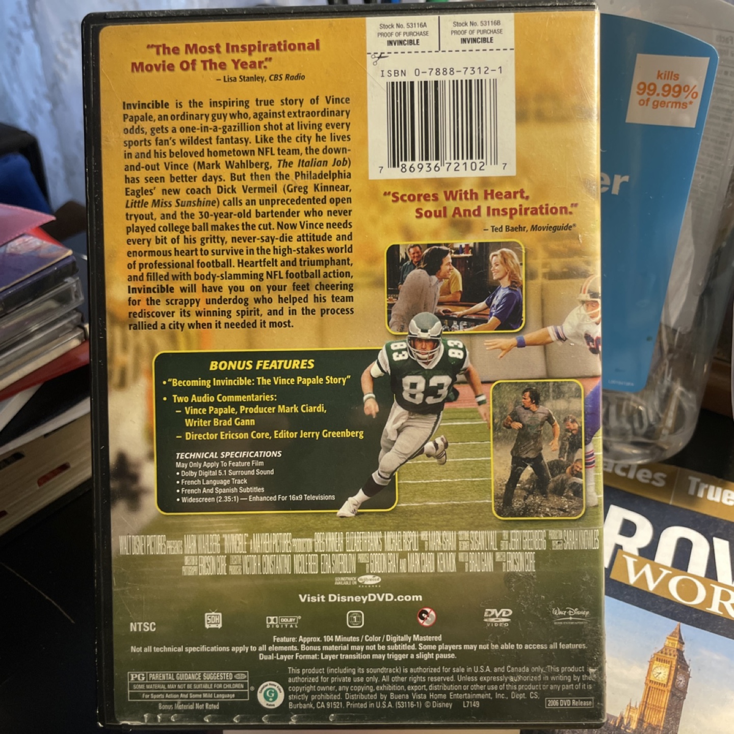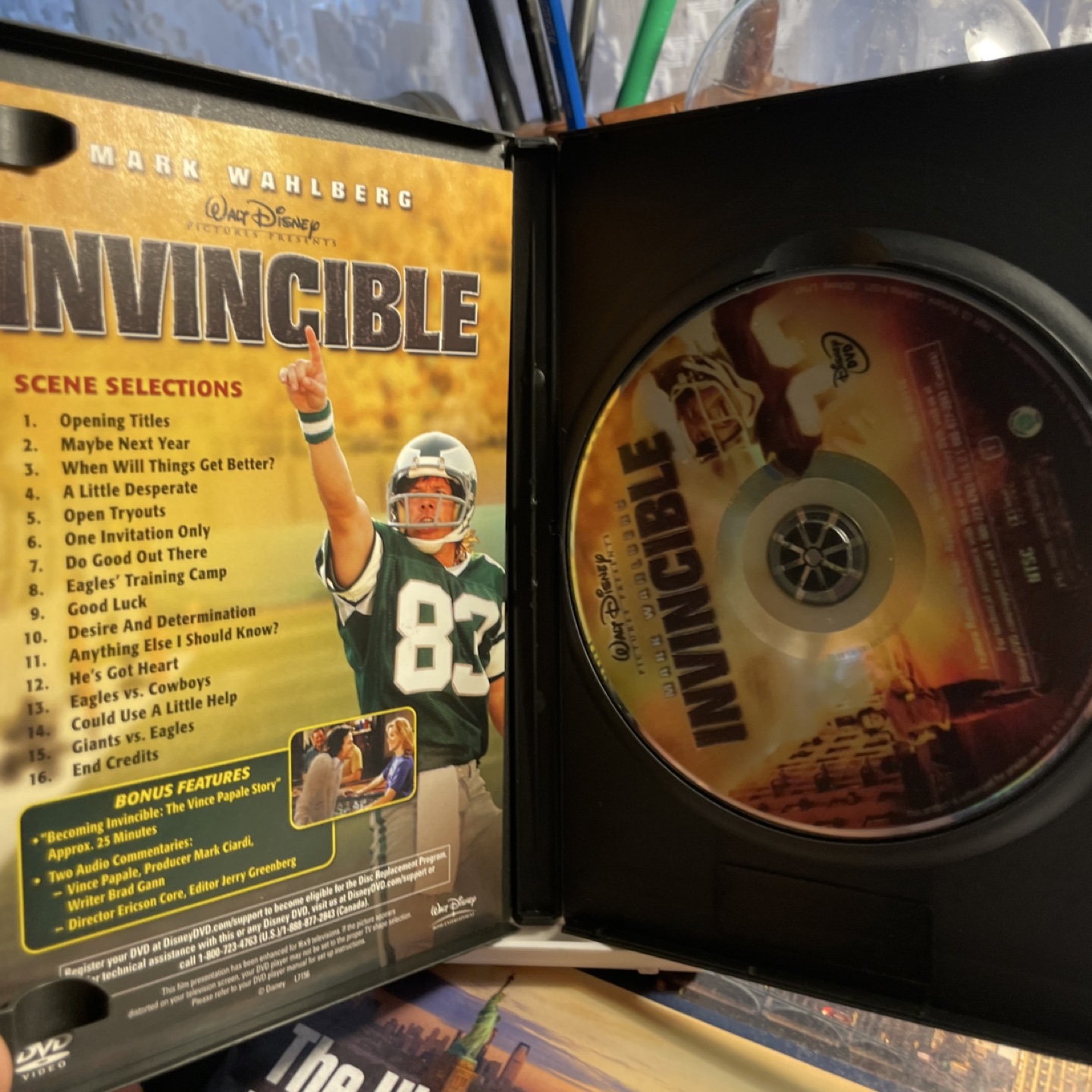 Selling the Invincible DVD starring Mark Wahlberg! It's inspired by a true story. The DVD comes in its original case. Enjoy the bonus features, including "Becoming Invincible: The Vince Papale Story" and audio commentaries