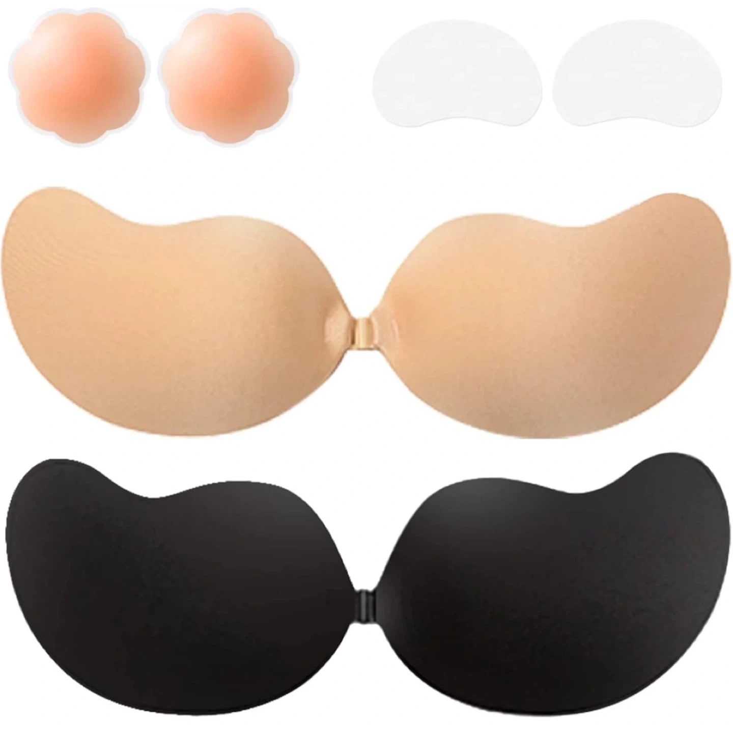21Brand New!!!Selling a set of adhesive strapless backless (B Cup) bras in beige and black! These are perfect for outfits where you don't want bra straps showing. They offer support and are reusable with proper care. Comes with flower-shaped nipple covers and clear adhesive covers!