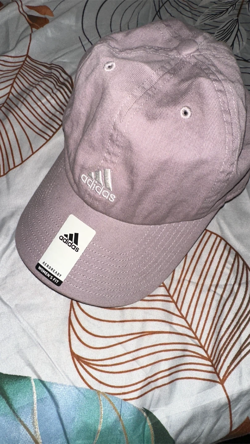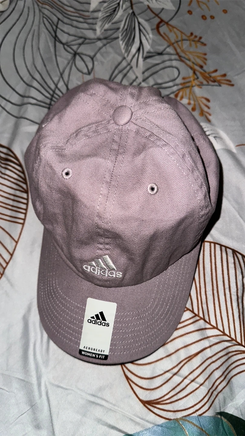 This is an Adidas AEROREADY women's fit cap in a lovely light purple color. It's perfect for keeping the sun out of your eyes during outdoor activities or just adding a sporty touch to your everyday look