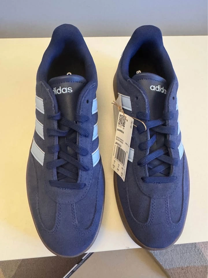 The Adidas Barreda Men’s Size 10.5 Blue Light Blue Gum JR5533 is a stylish and comfortable athletic sneaker designed for men by Adidas. This shoe features a vibrant blue color with light blue accents, perfect for adding a pop of color to any athletic outfit. With its sleek design and quality construction, this shoe is a great option for those looking for both fashion and functionality in their footwear.
