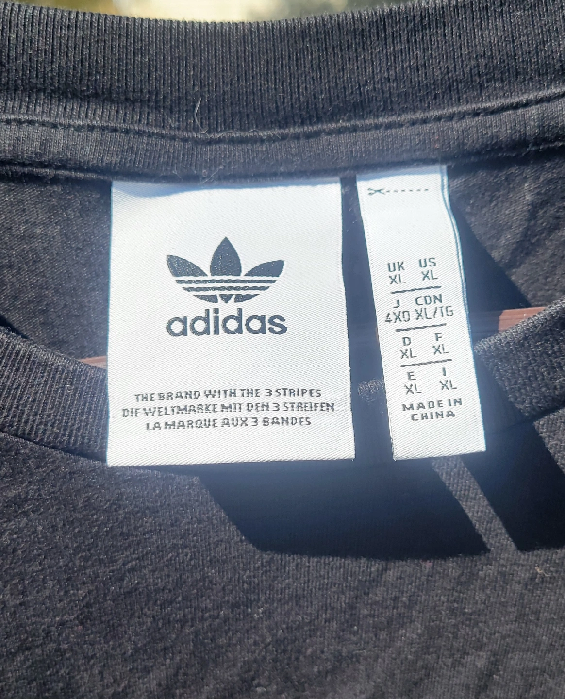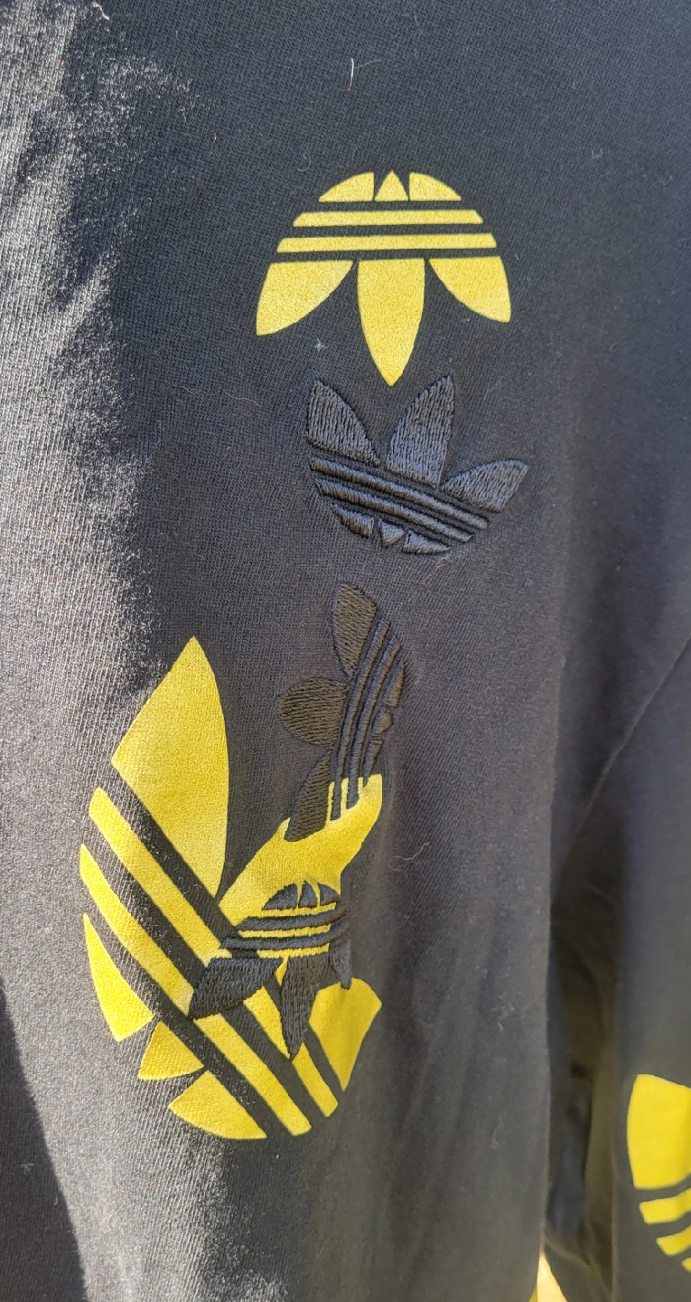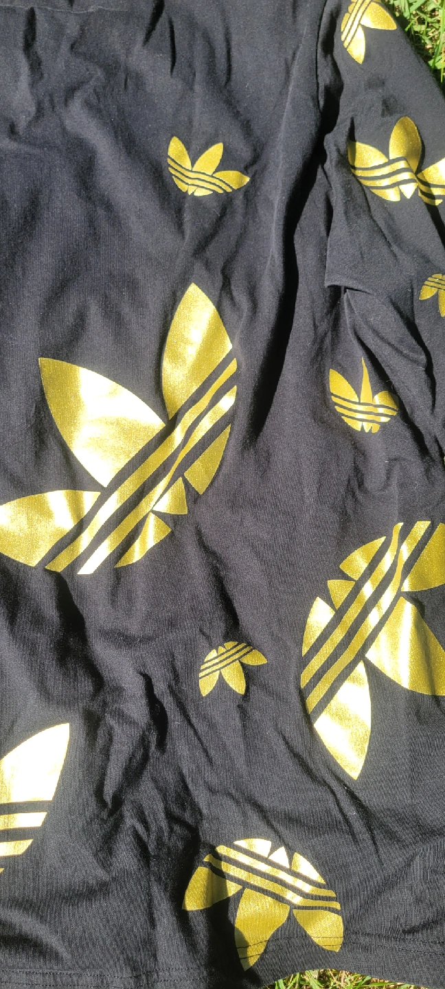 Selling an Adidas long sleeve shirt in size Men's XL. It's black with gold trefoil logos all over. The material is soft and comfortable, perfect for casual wear!