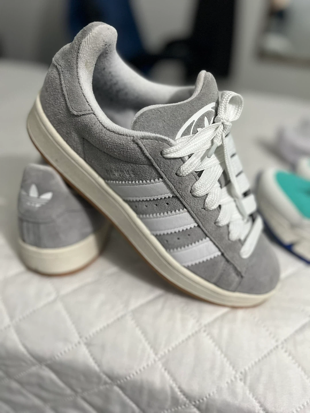 Selling a pair of Adidas Campus 00s sneakers in a stylish grey and white colorway! They're in great condition and ready for a new home. The size is US 8.5 / UK 8 / FR 42 / JP 265. These sneakers have a classic design with the iconic three stripes.