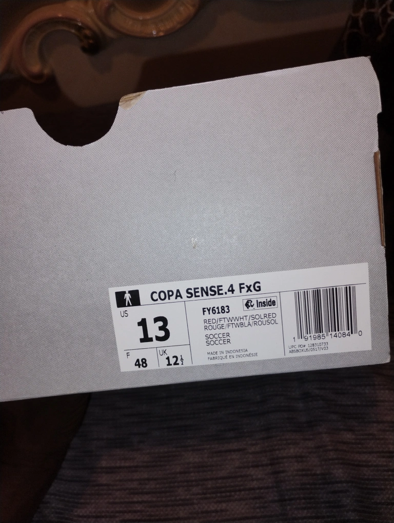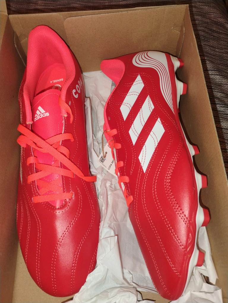 Selling a pair of Adidas Copa Sense.4 FxG soccer cleats in US size 13. They come in a vibrant red and white colorway. Perfect for soccer games!