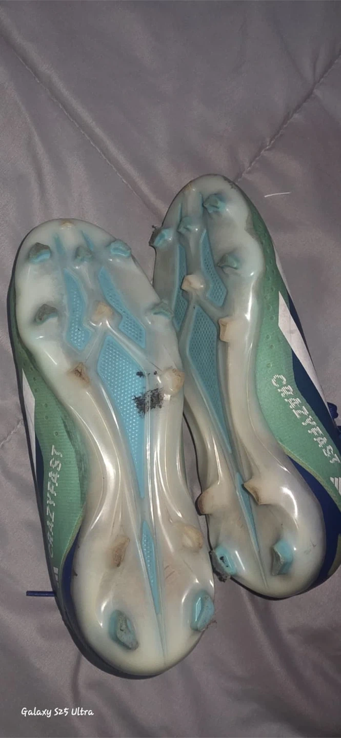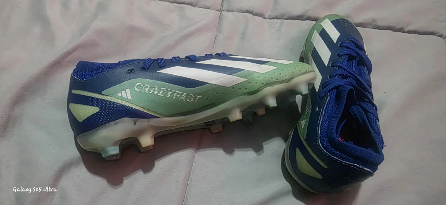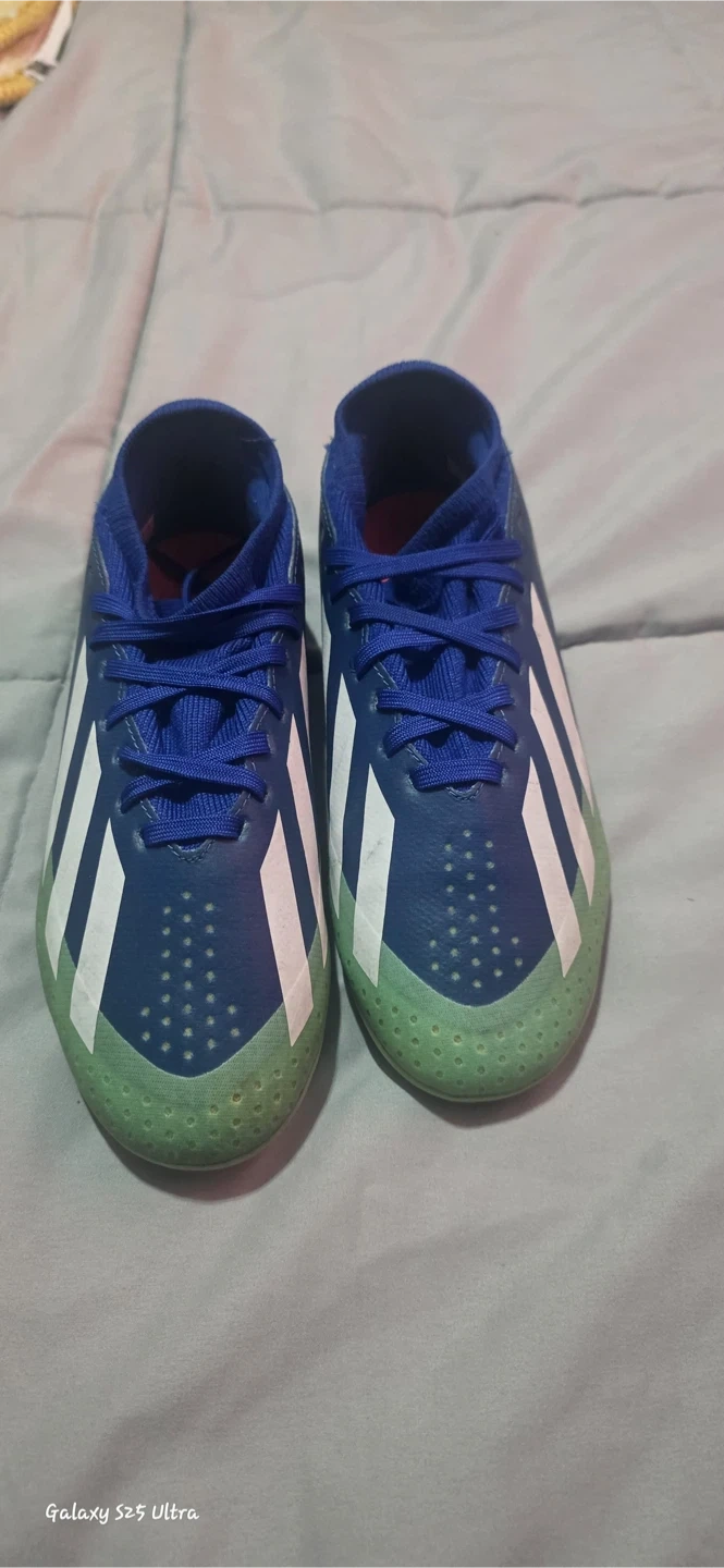 10Selling a pair of Adidas Crazyfast soccer cleats in youth size 2. They are blue, white, and green. These cleats are in good condition and ready for the field!.