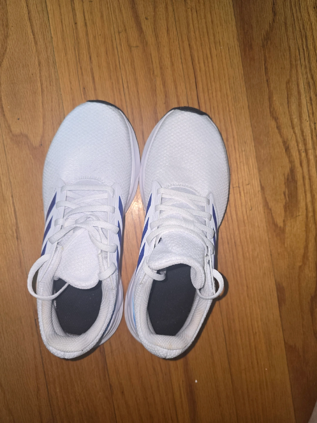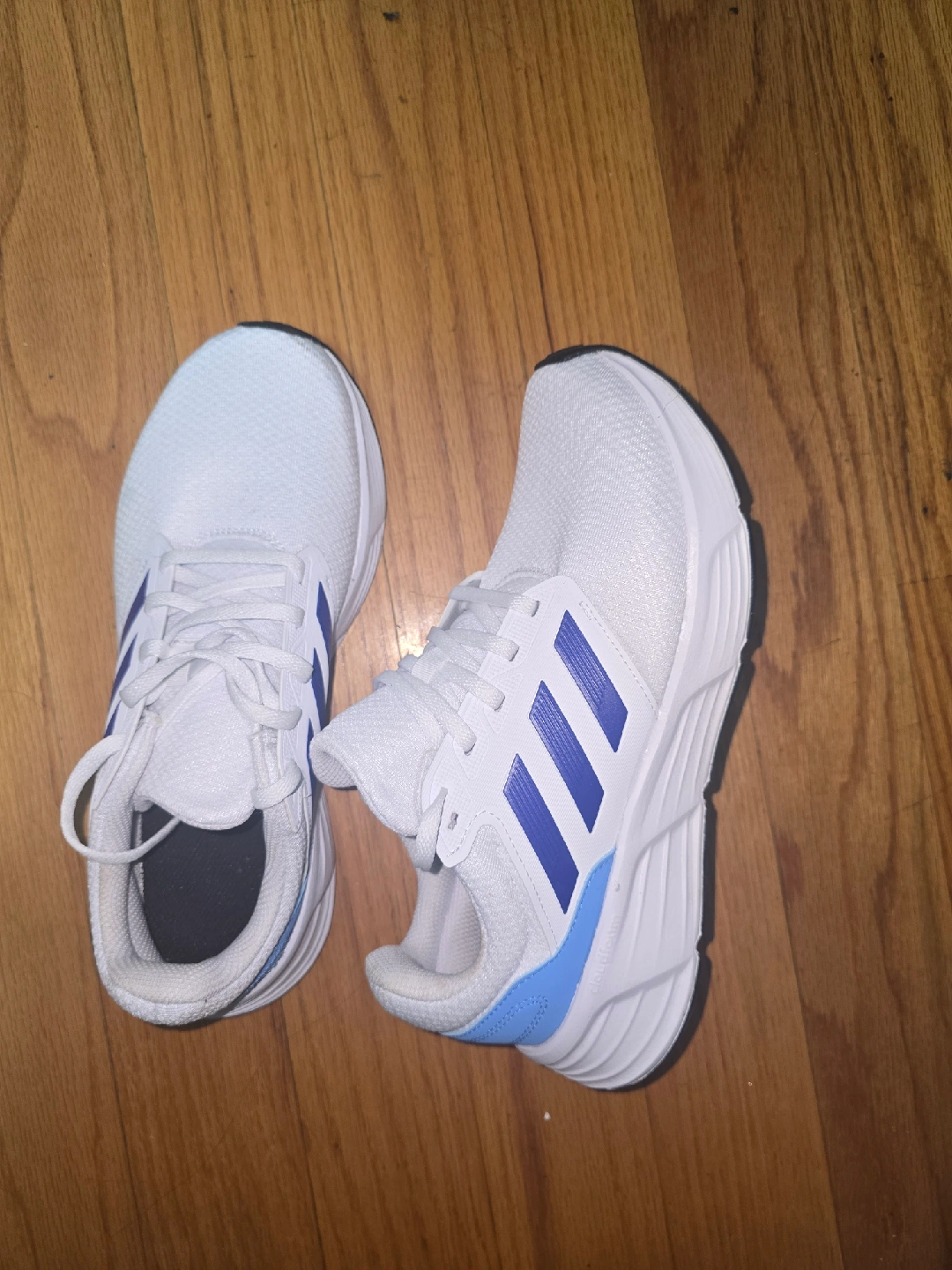 Selling a pair of Adidas Galaxy 6 shoes in white and blue! They are in good condition and ready for a new home! Perfect for running or everyday wear. I dont have the box