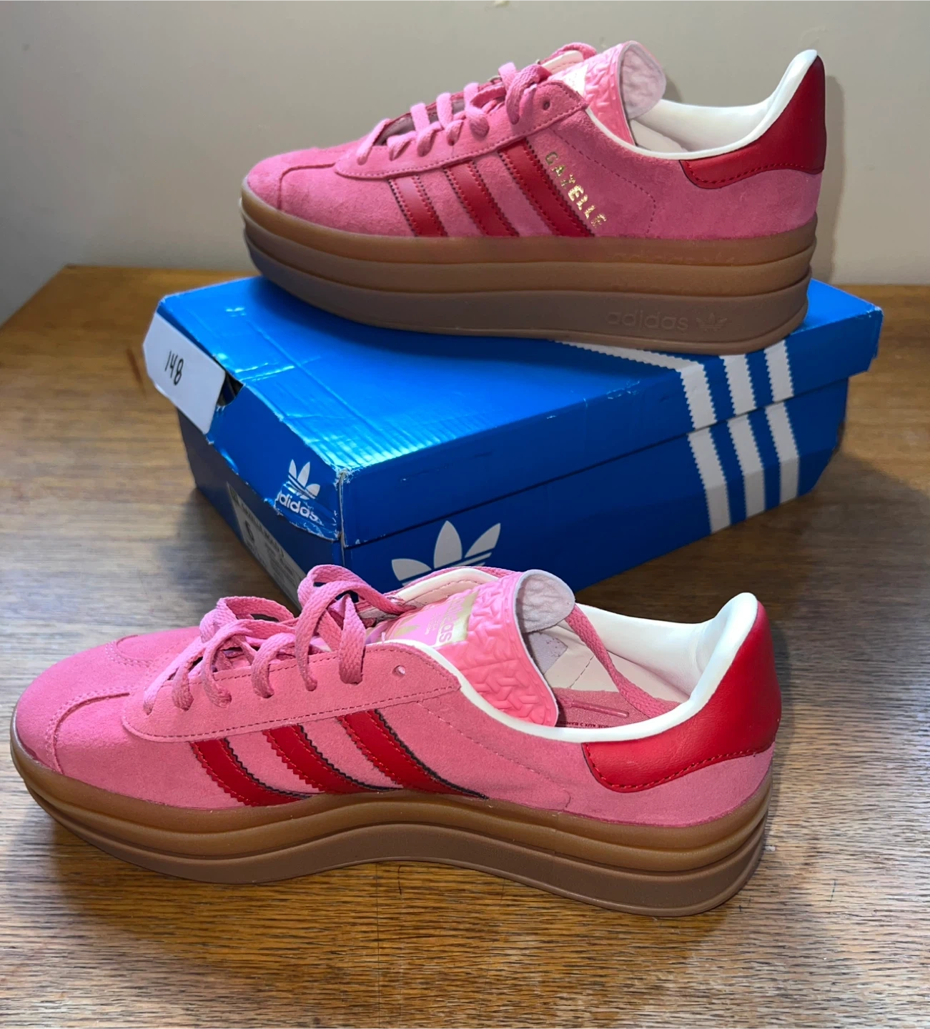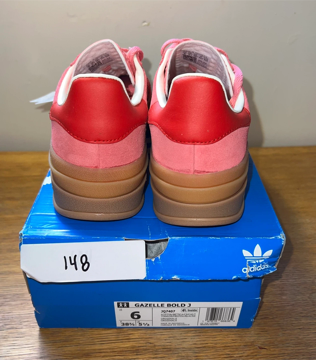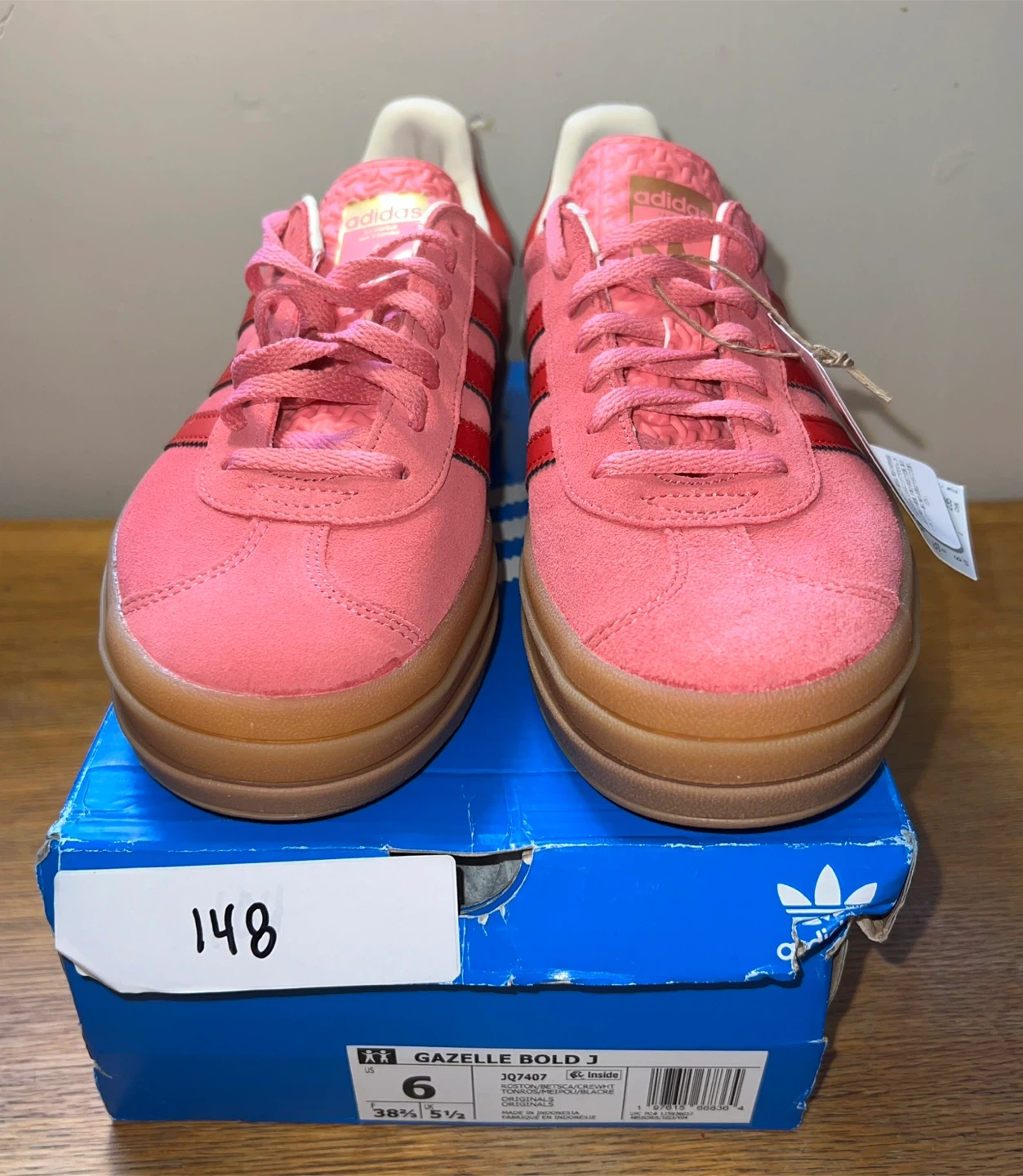 Selling a pair of Adidas Gazelle Bold J sneakers in pink! They are a youth size 6 and come with the original box. These stylish shoes feature the classic Gazelle design with a bold, modern twist. Perfect for adding a pop of color to any outfit!
