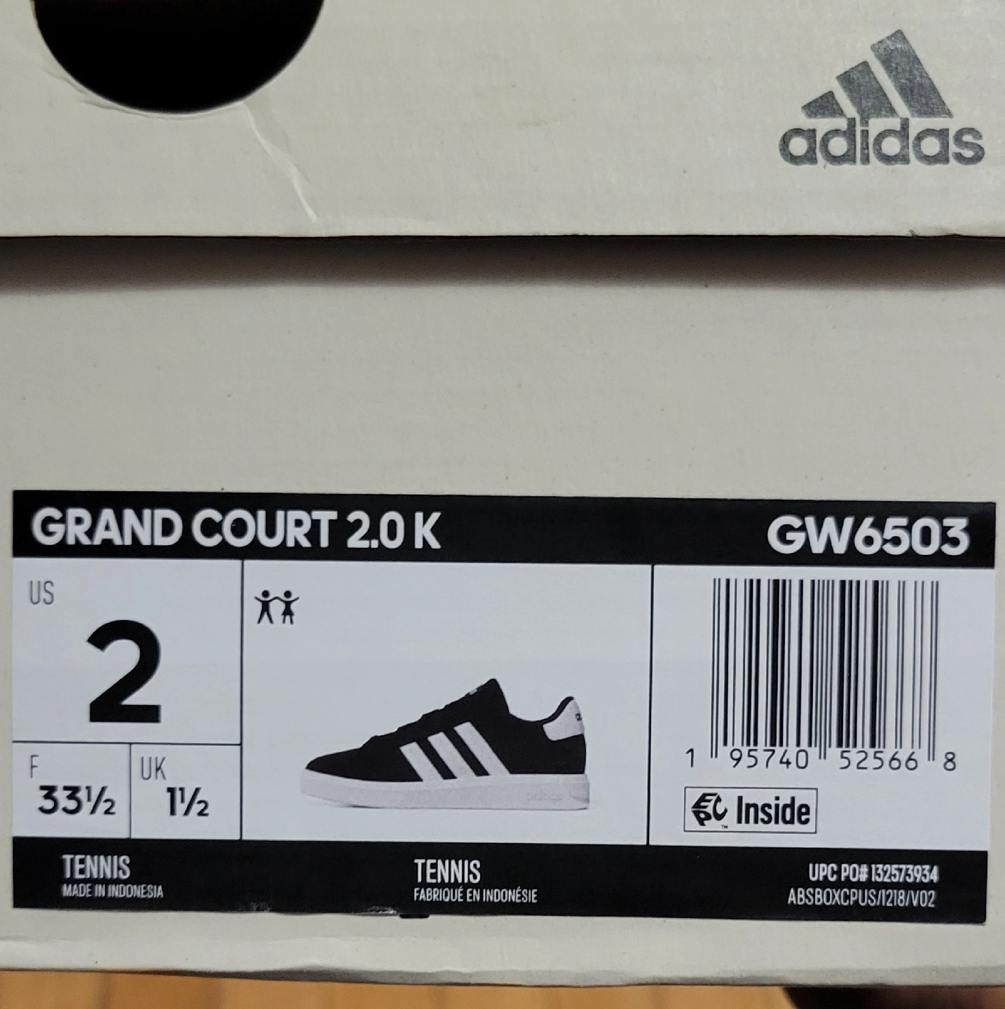 584Brand new Adidas Grand Court 2.0 K tennis shoes in youth size 2! These stylish sneakers come in black with the classic white Adidas stripes. They are in the original box and ready for a new owner
