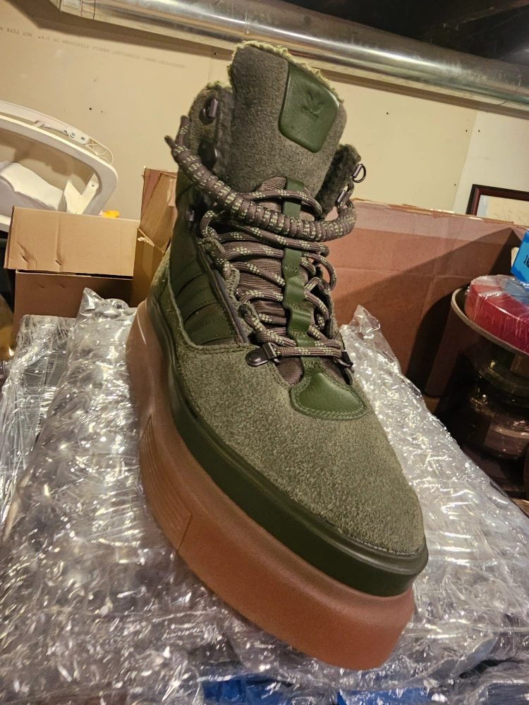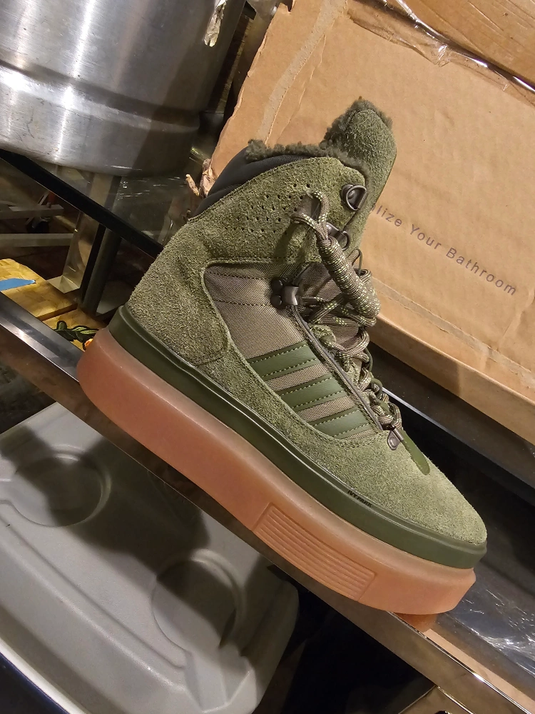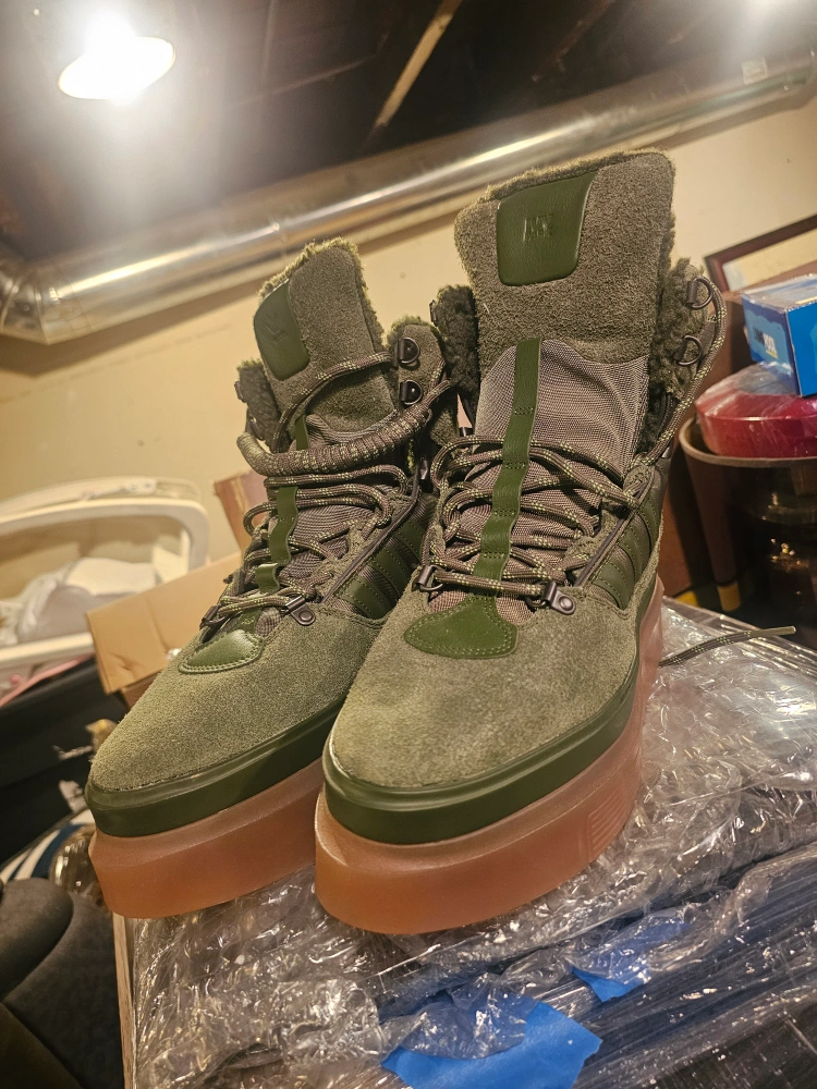 Selling a pair of Adidas Ivy Park Super Sleek Boots in green! They're a size US 10.5. They have a unique and stylish design, perfect for making a statement