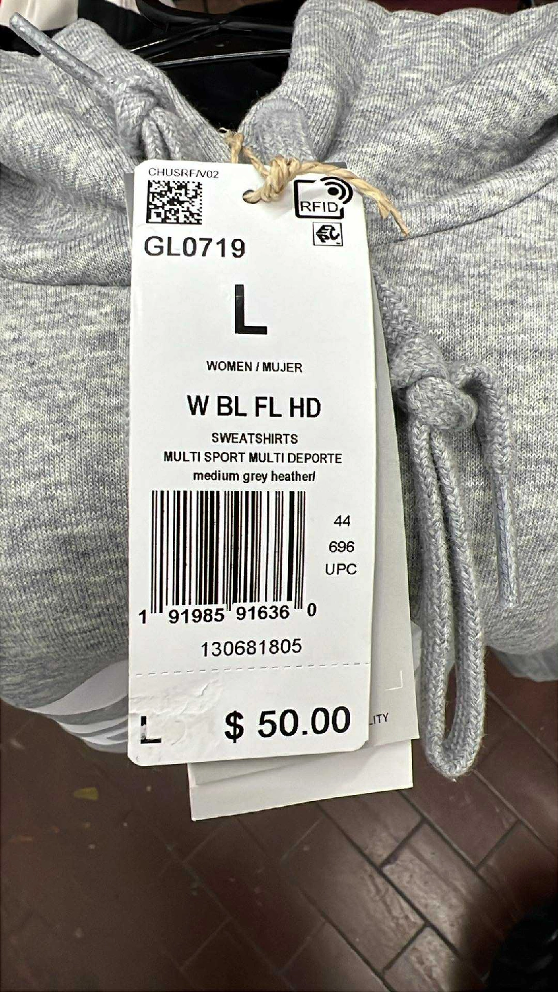 75Selling an Adidas women's hoodie in a size large! It's a multi-sport fleece hoodie in a medium gray heather color. The style is W BL FL HD. Originally bought for $50!