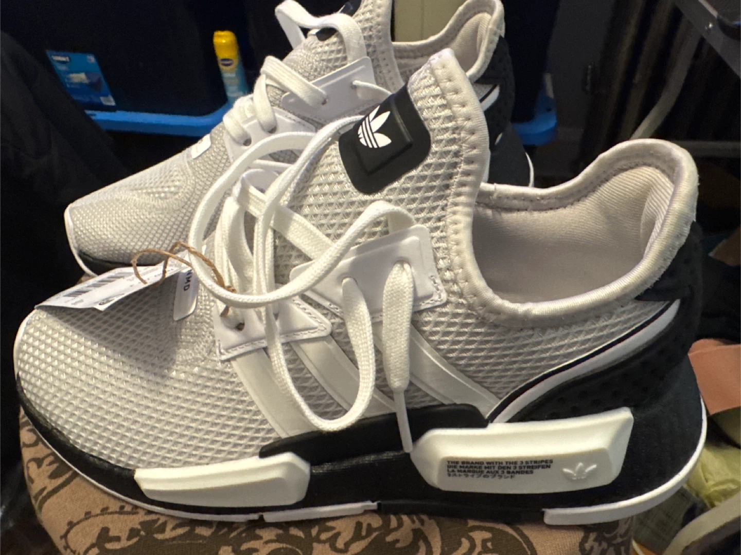 Selling a pair of brand new Adidas NMD sneakers in white! They feature the classic Adidas three stripes design and are super comfortable. Perfect for everyday wear!