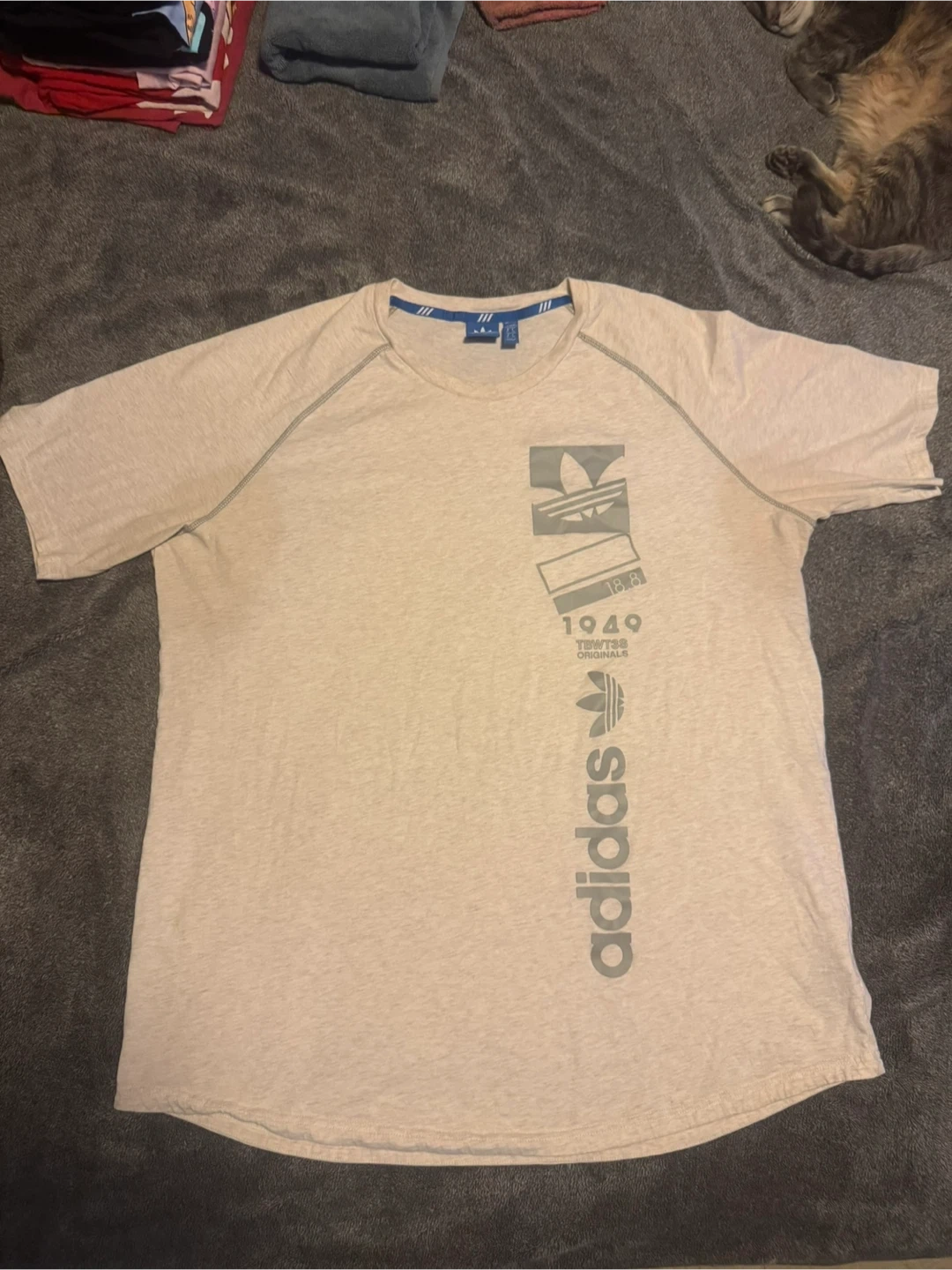 Selling an Adidas Originals T-shirt with the 1949 design. It's a size XL and features the classic Adidas logo and branding. Great for casual wear or sports!