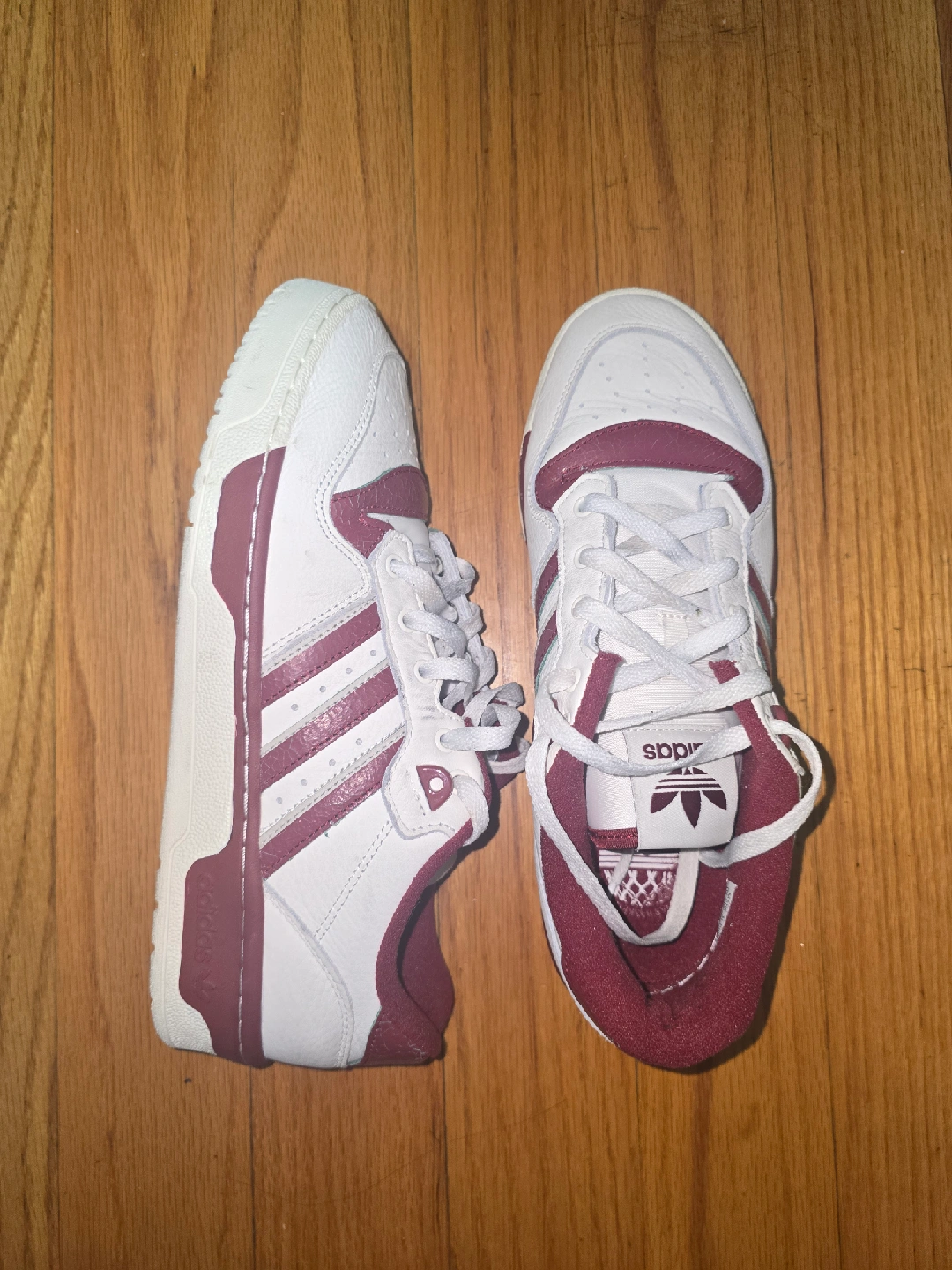 Selling a pair of Adidas Rivalry Low sneakers in a white and burgundy colorway! These are in great condition and ready for a new owner. Perfect for everyday wear or hitting the court. I have the original laces, I used them 1 or 2 times, it is in perfect condition.