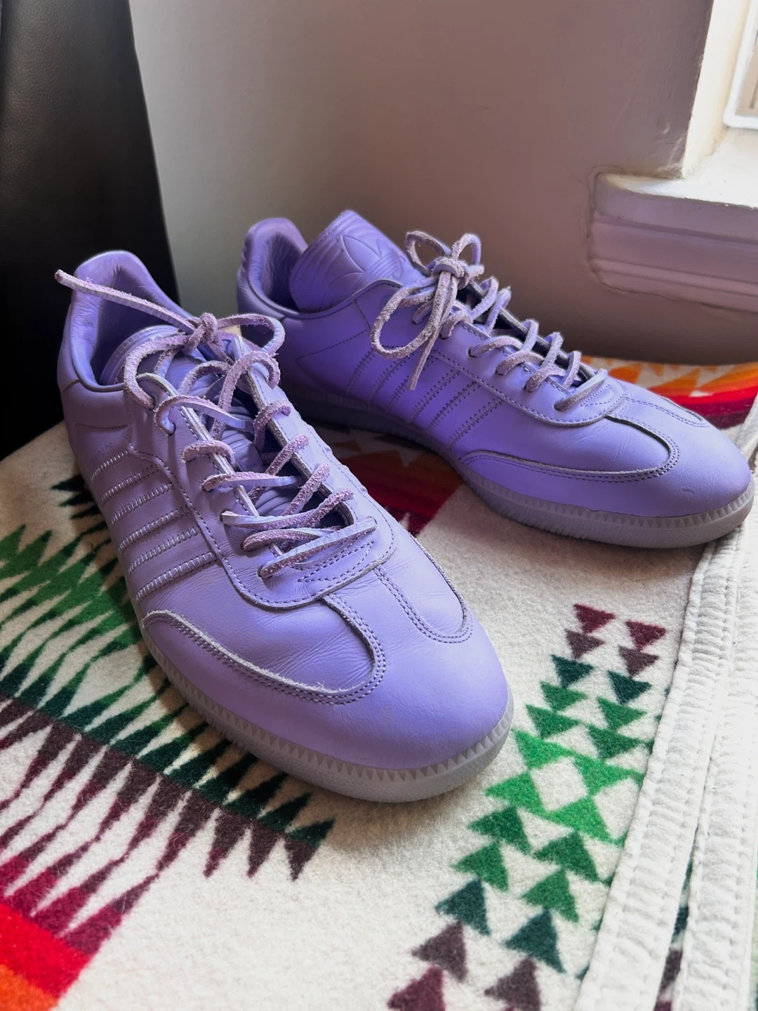 60Selling a pair of lightly worn Pharrell special edition Adidas Samba’s and They’re ready for a new home. These classic shoes are known for their comfort and style, perfect for everyday wear. Great for adding a pop of color to your wardrobe!
