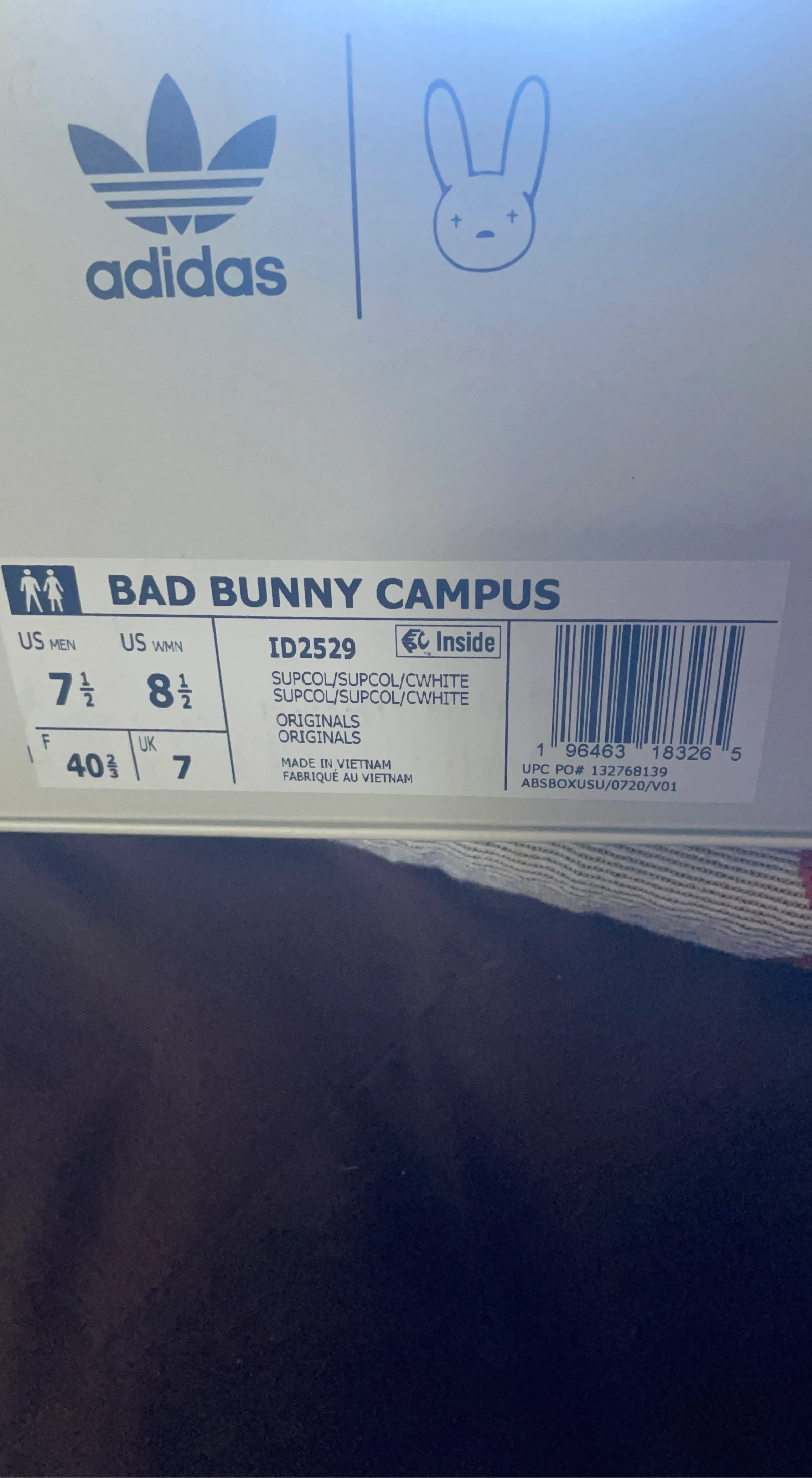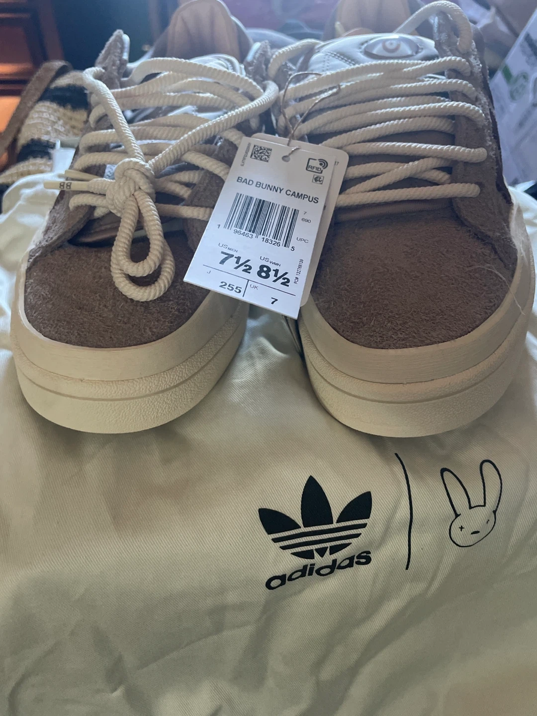 Selling a pair of Adidas x Bad Bunny Campus shoes in US men's size 7.5 (US women's size 8.5). These stylish shoes come with the original box. Get ready to step out in style!