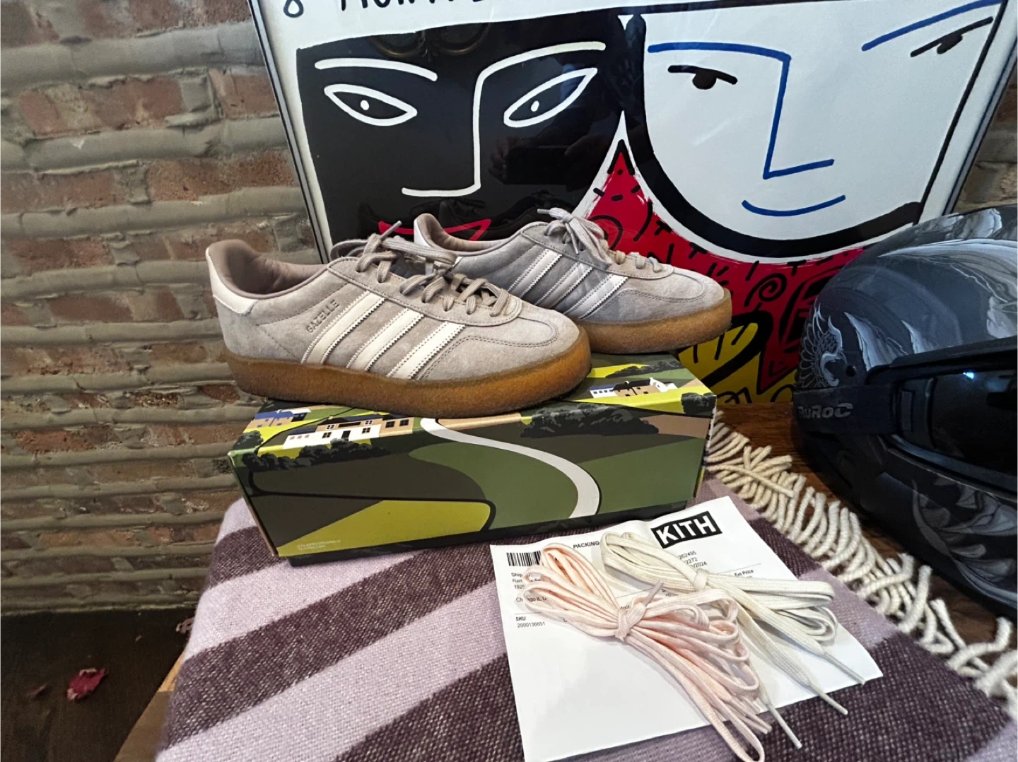 60Selling a pair of Adidas x Clarks Gazelle Indoor shoes. They come with the original box and extra laces. These sneakers are a stylish addition to any wardrobe!