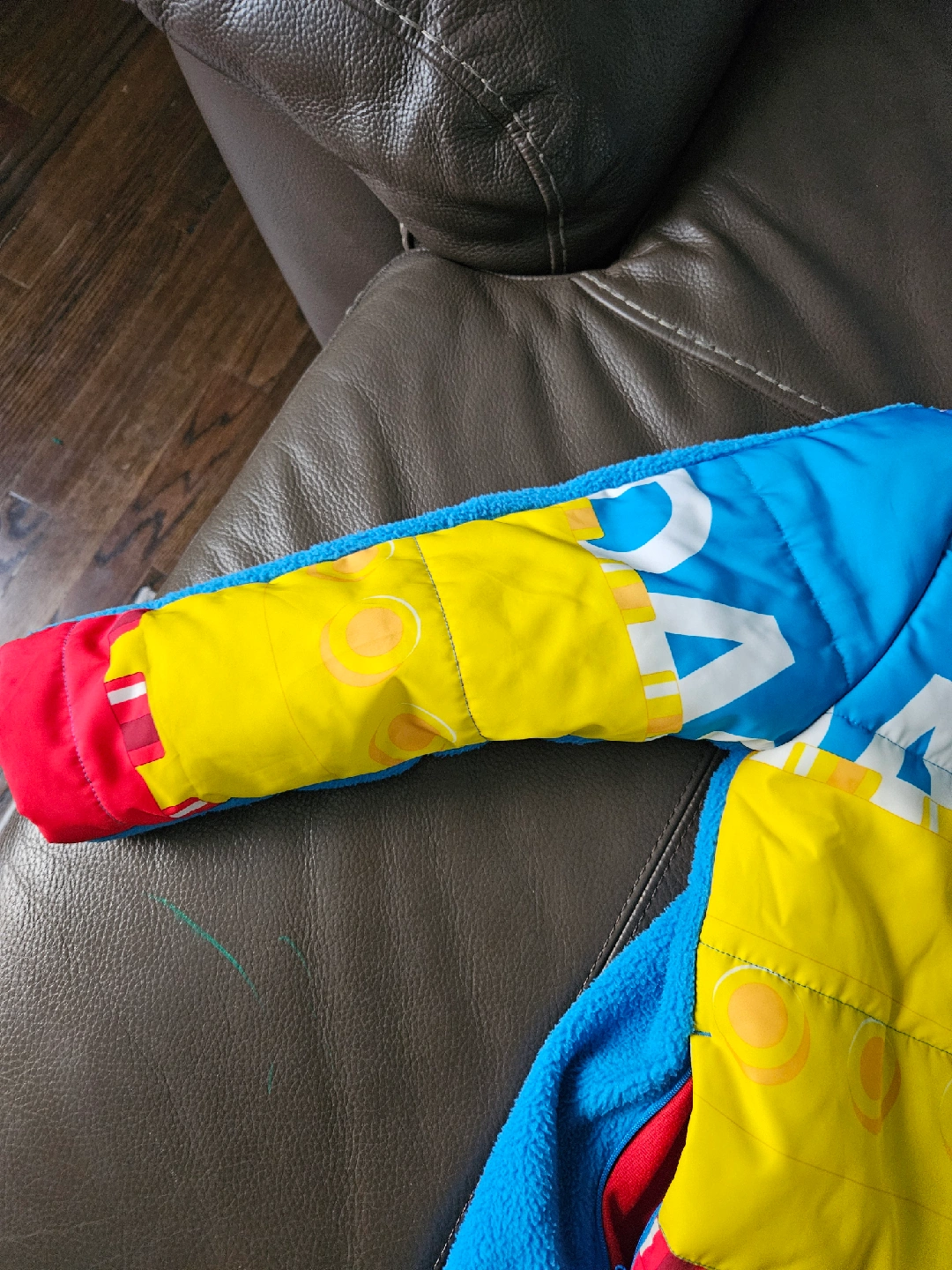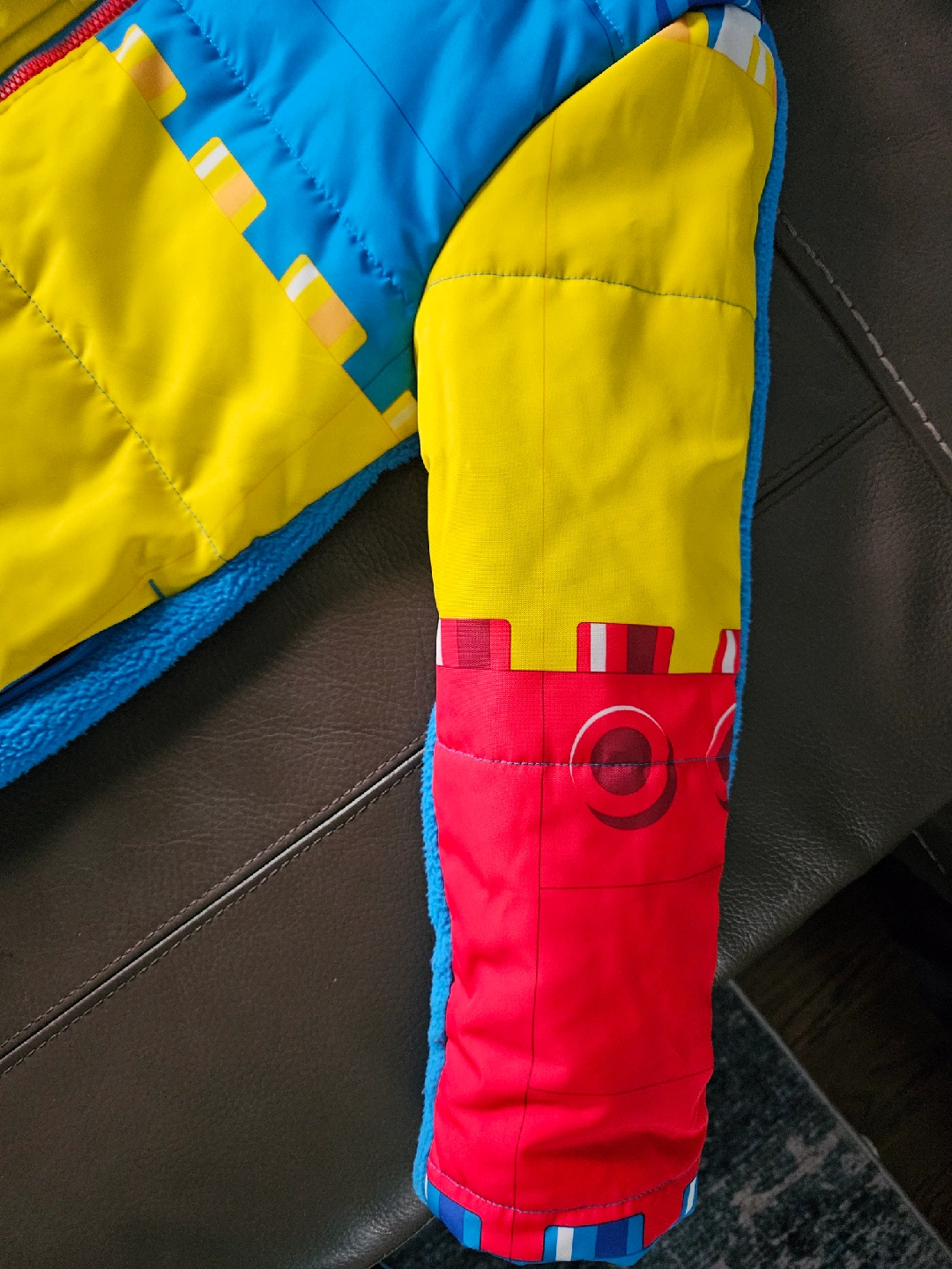 36Selling a colorful Adidas x Lego padded jacket for kids! It features a playful design with Lego brick patterns in blue, yellow, and red. Perfect for keeping your little one warm and stylish.