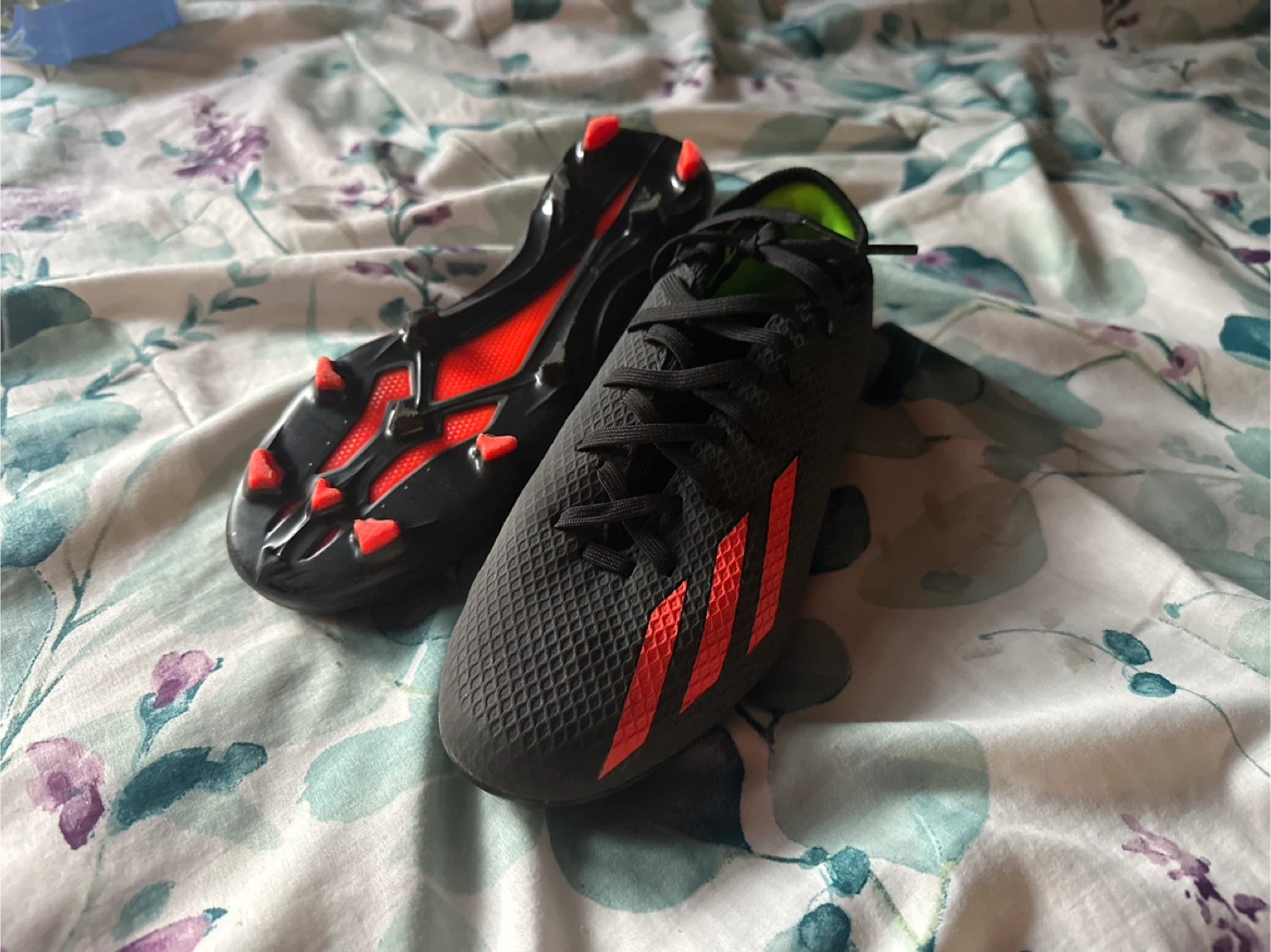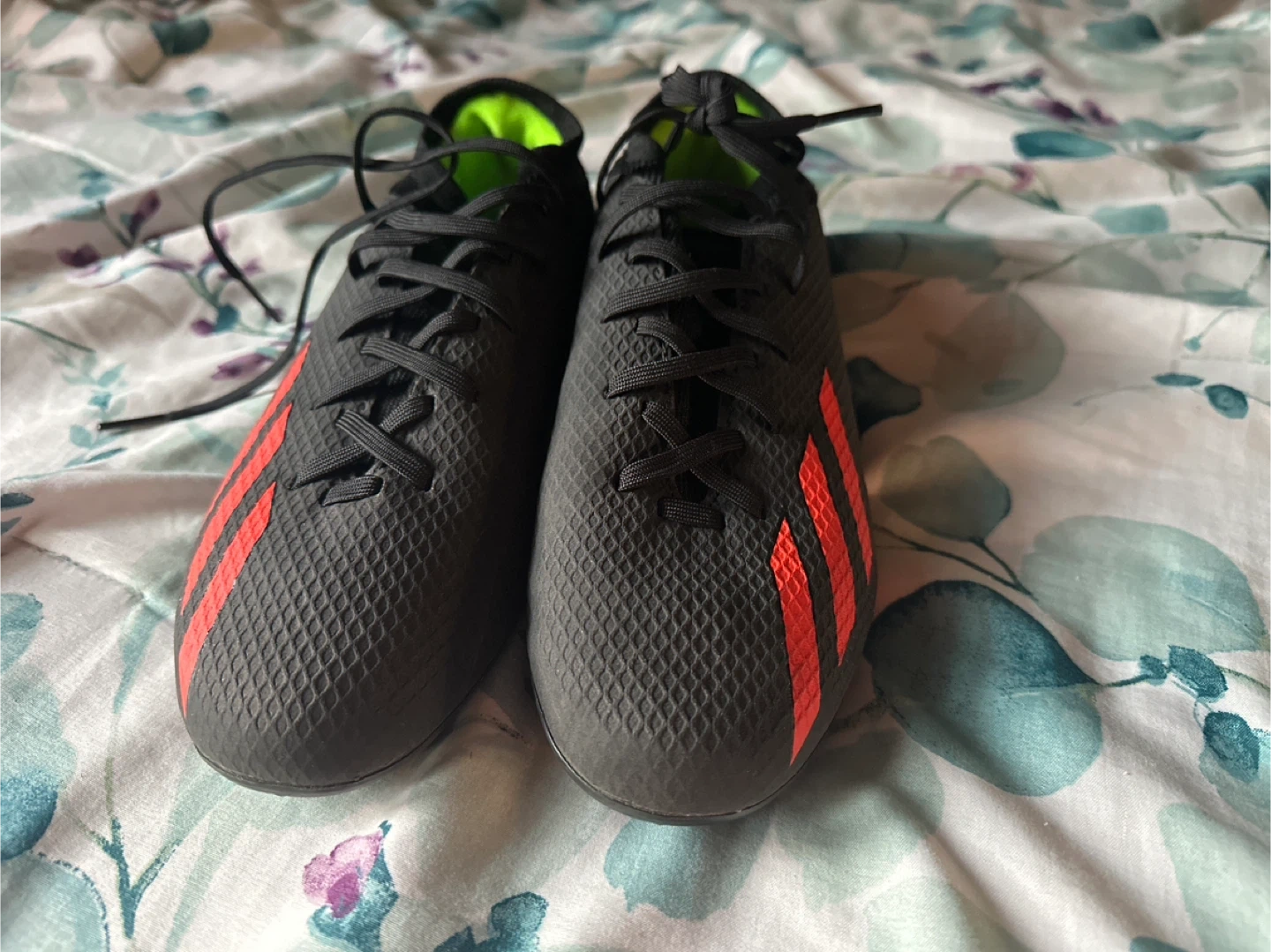 Selling a pair of Adidas X Speedportal.4 FxG soccer cleats! They're black with red stripes and in great condition. The size is US 5
